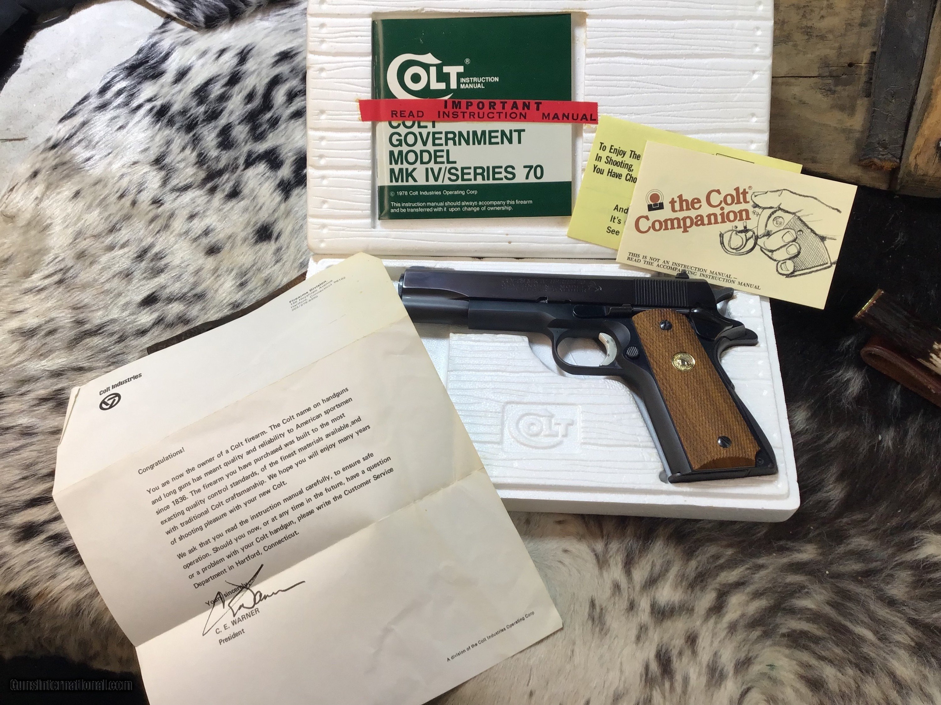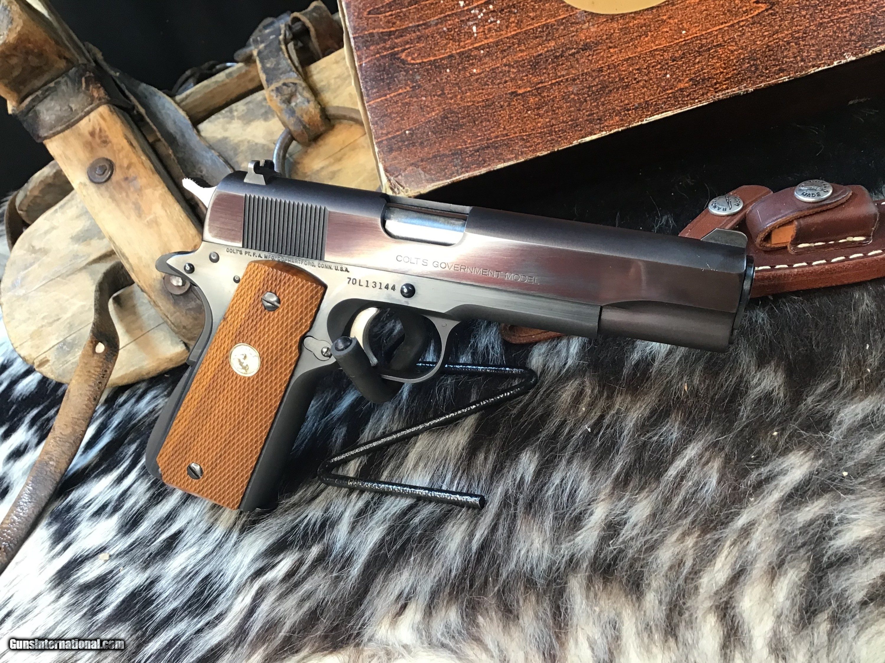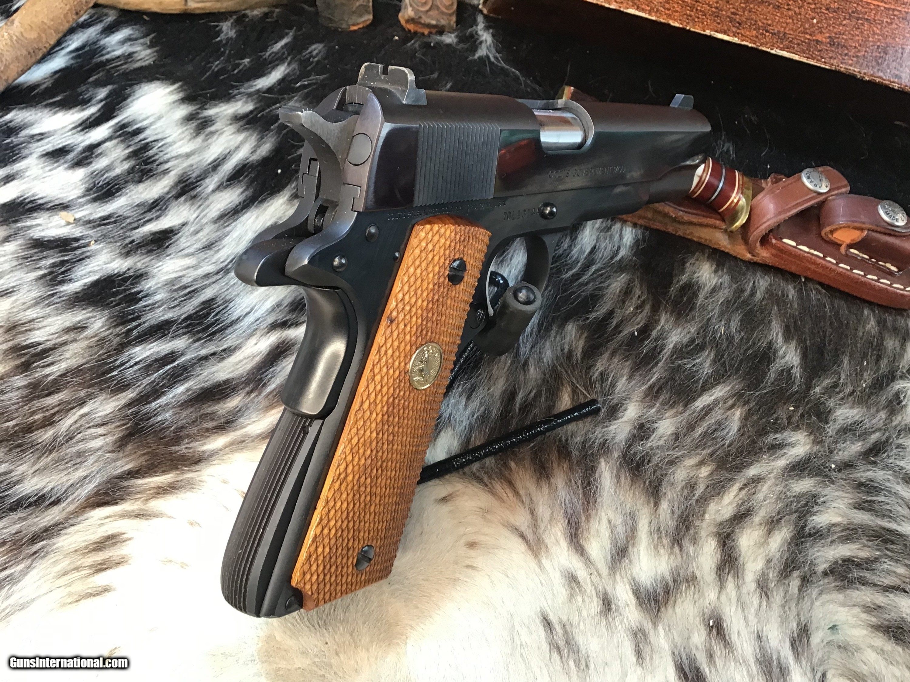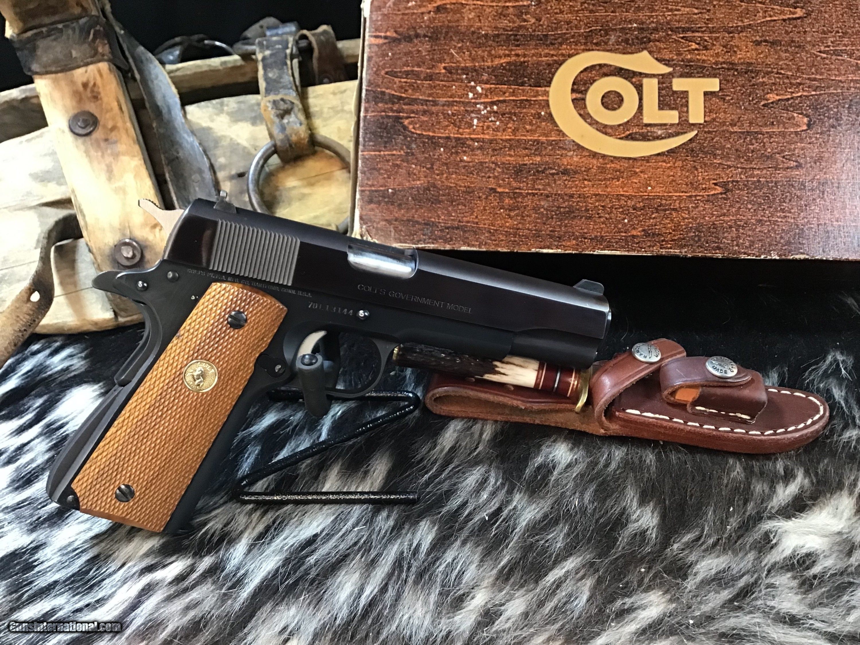 Description: 1978 Mfg. Colt Government Model MK IV Series '70 chambered in 9mm with one, nine round detachable Colt magazine and a 5" barrel. Blued steel frame with serrated magazine release and slide stop. Diamond checkered wood grips with Rampant Colt medallions. Manual thumb safety and grip safety. Single action trigger and hammer. Blued serrated slide with fixed iron sights. The flats on the slide have a pleasing plum color. Comes in its factory box with matching serial number and factory paperwork. Gun comes in factory numbered to the gun Colt box with owners papers intact. A great 1911 to collect or do range work without breaking the bank on ammo. Add 3% if paying by credit card. Free shipping for all US Veterans. God Bless America from a proud American, and a Viet Nam Vet , thankful for our freedoms.. paid for by the Blood ,Sweat and Tears of our brave men and women in uniform. Ten Below Firearms is a Veteran owned and operated business. We specialize in out of production models of high quality firearms. (I prefer to be called a Collector because it sounds a lot nicer then a Hoarder.) We love to ship! We ship to all states where legal, just give us a call! Handguns normally ship for $50 and up, and Long guns for $50 and up for extra length long guns. That's 2-3 day FedEx shipping, Delivery conformation and with tracking number. Optional insurance is additional $1.85 per $100 and highly recommended. Long guns shipped FedEx Ground unless buyer pays up charge for air. * If you live in Minnesota and want to drive to see a gun, reach out to me to discuss making an appointment – ALL GUNS ARE LEGALLY TRANSFERRED – there are NO EXCEPTIONS. All payments sent via USPS Priority mail must be received within FIVE DAYS of date of purchase or item will be relisted for sale. **PROPS MAY BE USED FOR PHOTOS, PROPS ARE NOT INCLUDED WITH THE SALE OF THIS FIREARM** Thank you! Please call the store to complete your purchase : 651-303-7769 Layaway:If needed we offer a 60 day layaway program. We offer FREE 60-day layaway. Buyer must pay at least 1/3 down, 1/3 Due in thirty days and the final balance due in sixty days. On all uncompleted layaways, all payments made will be non-refundable. The 60 days begins the day the buyer commits to buying the gun. 90 day layaway is available with 1/2 down, via phone. All layaway sales are final. Layaway is not available on negotiated prices. Please Check us out at tenbelowfirearms And Please Send An Email or Call If We Can Assist in SELLING OR BUYING Your Collection. Friendly honest service, Fair Pricing, and top prices paid out for your interesting firearms. We also will take classic cars and trucks on trade. We also will take Gold & Silver on trade. Trade Opportunities: Premium Trades Considered: At Ten Below Firearms we welcome discussions of trades, especially if you have high-quality firearms. This could be an excellent opportunity to upgrade or diversify your collection. RETURN POLICY:. All firearms EXCEPT ANTIQUE FIREARMS come with a 3-day from the time your firearm reaches your receiving FFL. - NON-FIRING, NON-MESSING-WITH (REMOVING PARTS, MOUNTING OPTICS, CLEANING, DETAIL STRIPPING) inspection / return privilege to cover any issue that was NOT noted in the written description -OR- shown in the photos of the item . Inspection is based on a visual review of the gun to confirm the gun is in the condition stated. The inspection period begins at time of delivery to your dealer. It is your responsibility to inspect the gun in this time frame and inform Ten Below Firearms by phone or e-mail, of any such issue. You MUST get ahold of us before just returning a firearm. In the case of a return, buyer pays all shipping. Please ask any questions you may have prior to purchasing one of our firearms for sale listings. Antique guns are sold as/is and are in no means under any warranty or guarantee to function. Return policy only applies to used firearms. No partial refunds. It is always prudent for ALL guns to be checked by a qualified gunsmith before attempting to fire. Once the gun has been transferred on a 4473 there WILL BE NO RETURNS, PERIOD. All Antique firearms are sold as collector’s items only and are under no circumstances warrantied as to shooting safety, function or accuracy. The purchaser is solely liable / responsible for determining that a gun is safe to shoot. Most of The firearms offered in our listings have not been test fired, but have been given a visual inspection only for firearm sale description purposes. It is our recommendation, should you choose to shoot an antique firearm purchased from us, have it thoroughly inspected by a qualified gunsmith before firing. By purchasing the purchaser agrees to hold the seller harmless against damage, injury, or death caused by defective merchandise or actions that are the fault or error of the purchaser. Handgun Caliber: 9x19mm Parabellum (9mm Luger, 9x19mm NATO) Manufacturer: Colt Model: 70 Series Government Model Serial Number: 70L13144 Barrel Length: 5” Condition: Excellent Metal Condition: Excellent Wood Condition: Excellent Bore Condition: Excellent Barrel Type: Semi Auto Action: Semi Auto Triggers: SA Finish: Blued Sights: Drift Adjustable Manufacture Date: 1978 Case: Box W/Owners Papers Item Location: MN Grips: Checkered Walnut W/Gold Medallions Price: $2,299.00 Contact Seller |