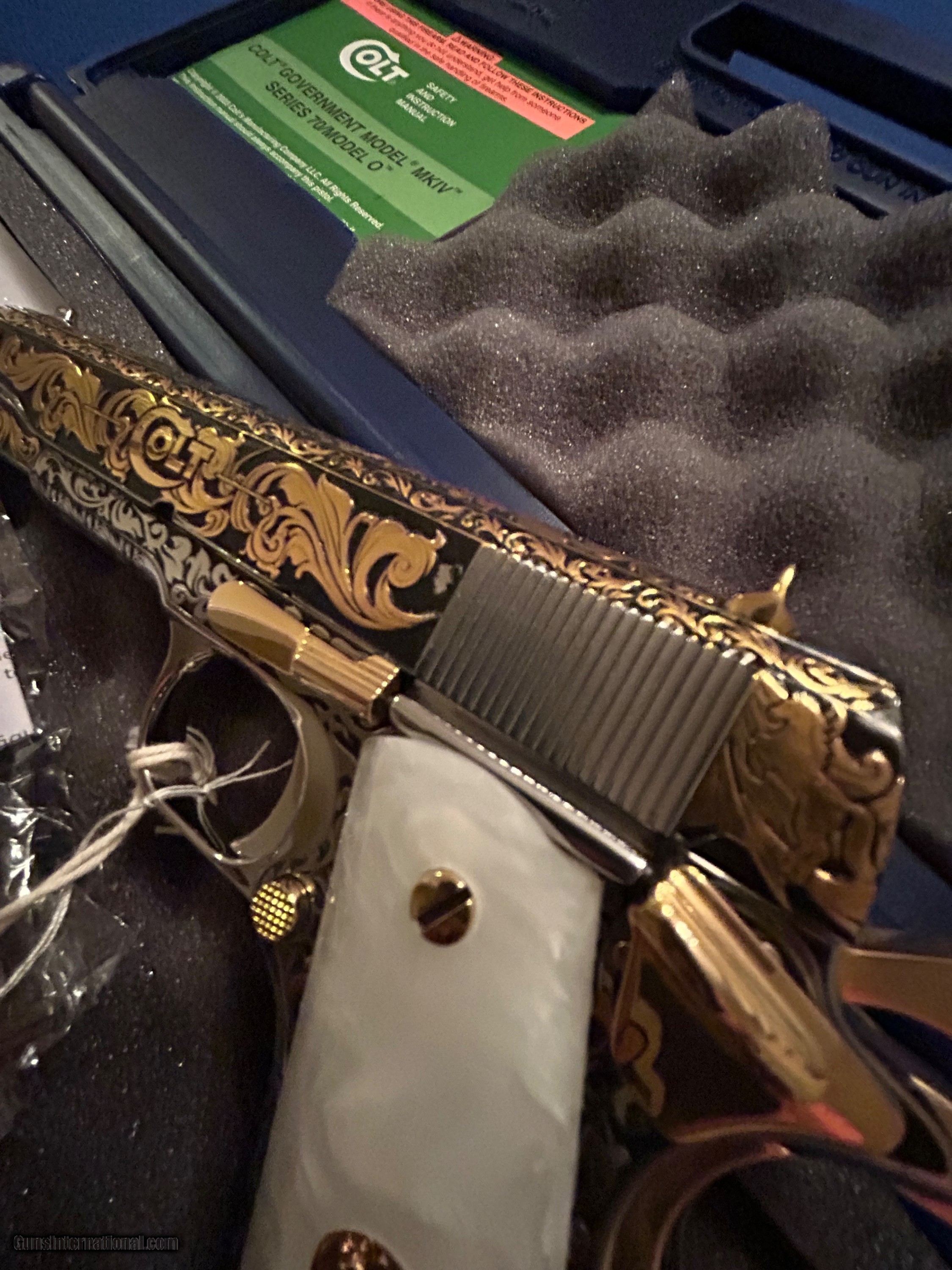 Description: You've seen the rest, now see the best!!! This is the most gorgeous .38 Super I've ever owned or seen. It is new and unfired. Not gaudy or tacky but classy as hell!!! Totally engraved with 24k gold accent. This is the one Colt you've been looking to add to your collection!!!!! $3,999 plus $45 shipping to your FFL. Personal chk or USPS money order. Merry Christmas to you!!!! ?????? Handgun Caliber: .38 Super Auto Manufacturer: Colt Model: 1911-0 Condition: New Price: $3,999.00 Shipping: $45.00 Contact Seller |