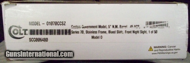 Description: This UNFIRED Colt 1911 MK lV is a series 70 CUSTOM SHOP pistol one of 50 made. Condition AS NEW. $2300.00. rmgrigolettoyahoo 732 280 8750 SOLD |