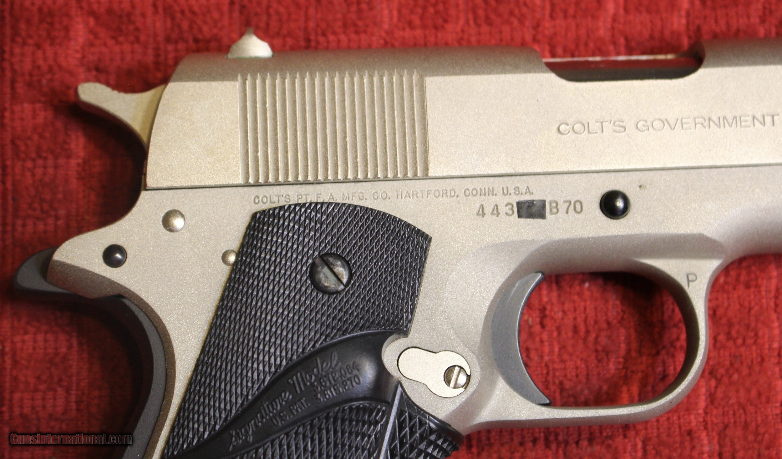 Colt 1911 E Nickel Series 70 45 ACP Matching Mag Factory Colt Pachmayr Signature Grips