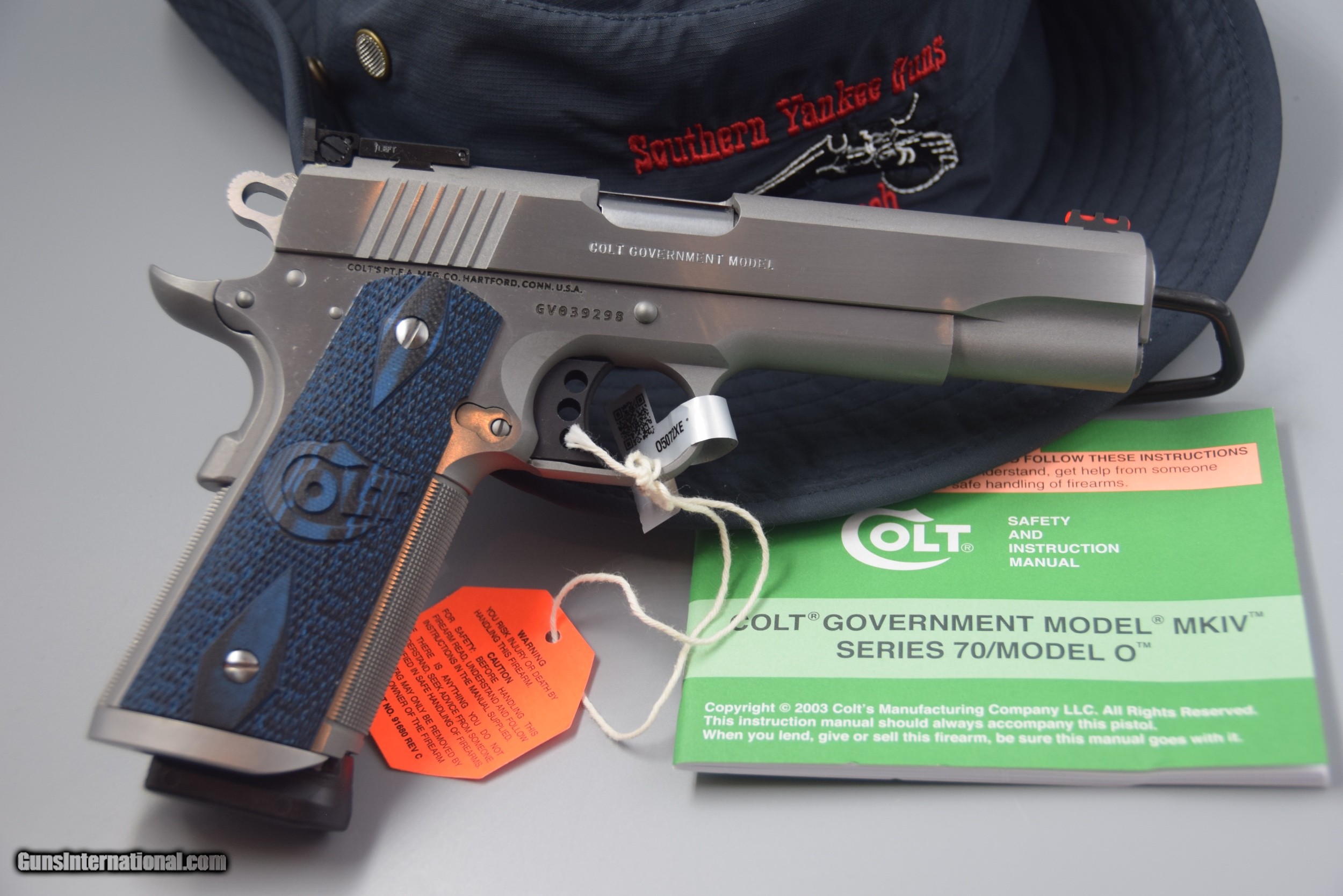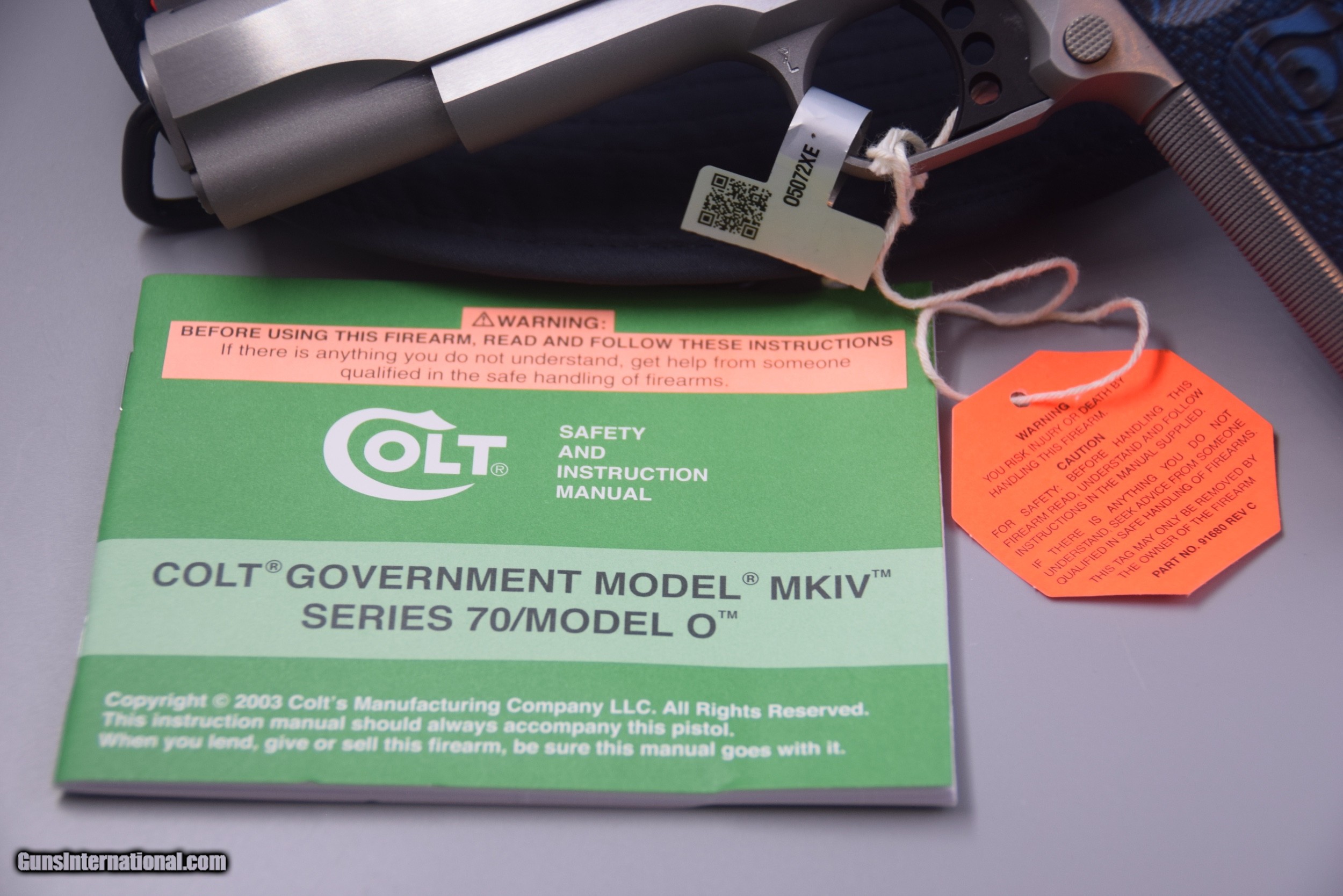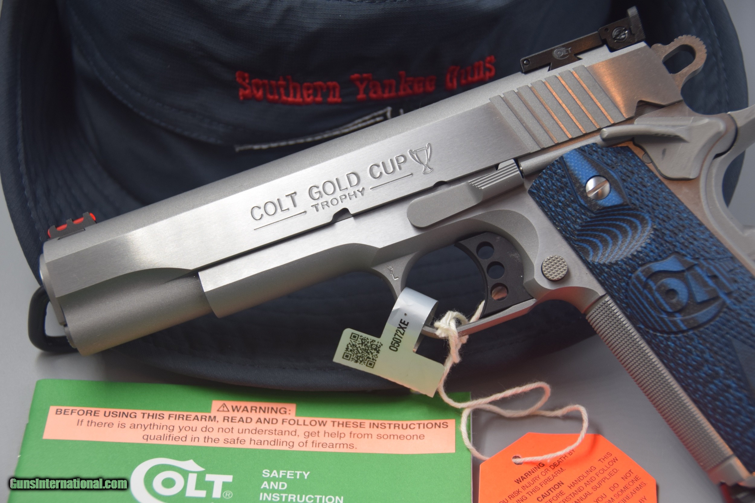 Description: Here's a new-in-box COLT 1911 GOLD CUP TROPHY STAINLESS STEEL SERIES 70 PISTOL IN 9 MM. It's one of the new guns and is beautiful. It includes great-looking blue G-10 grips; a mag well; Bomar rear sight with a fiber-optic front sight; as well as other factory enhancements. It's being offered for ONLY $1639.95 SHIPPED FREE with NO FEES for useing credit cards... SOLD |