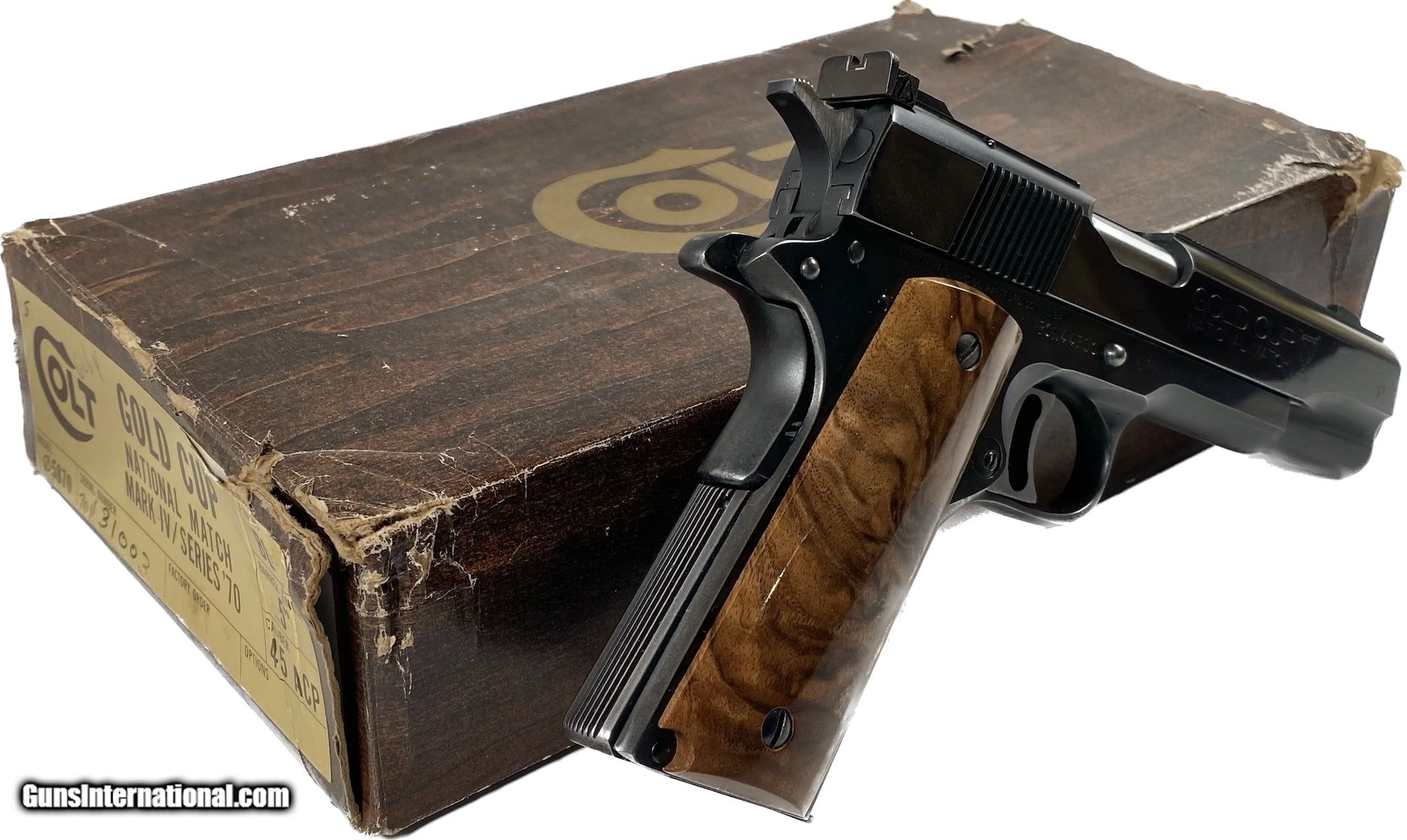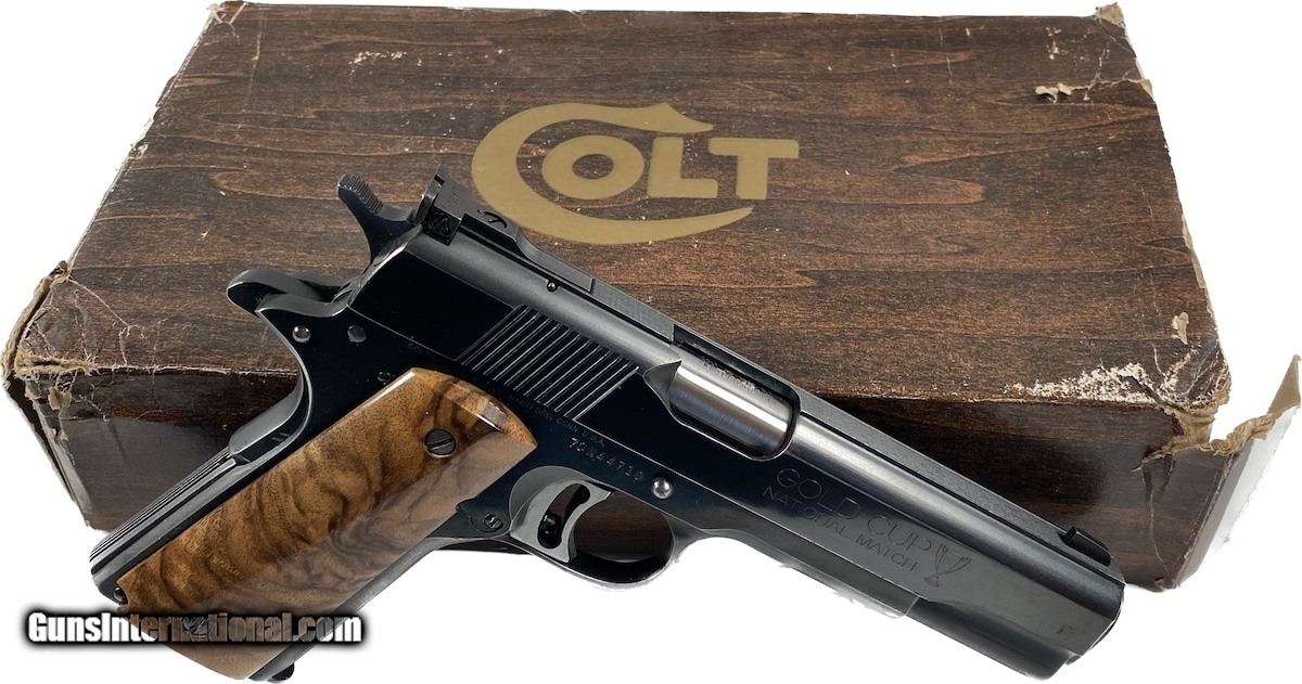 Description: Guns Listing ID: 631384 KW 10/7/22 COLT MKIV/SERIES 70 GOLD CUP NATIONAL MATCH 45 acp, 5\" bbl, cust. andgrips Stock # 10160022 Serial # 70N44710 Original box SOLD Manufacturer: COLT Model: 1911 Government Mark IV Series 70 Caliber Info: .45 ACP Condition: Used - Non-Certified Barrels: 5 BARREL Finish: BLUE |