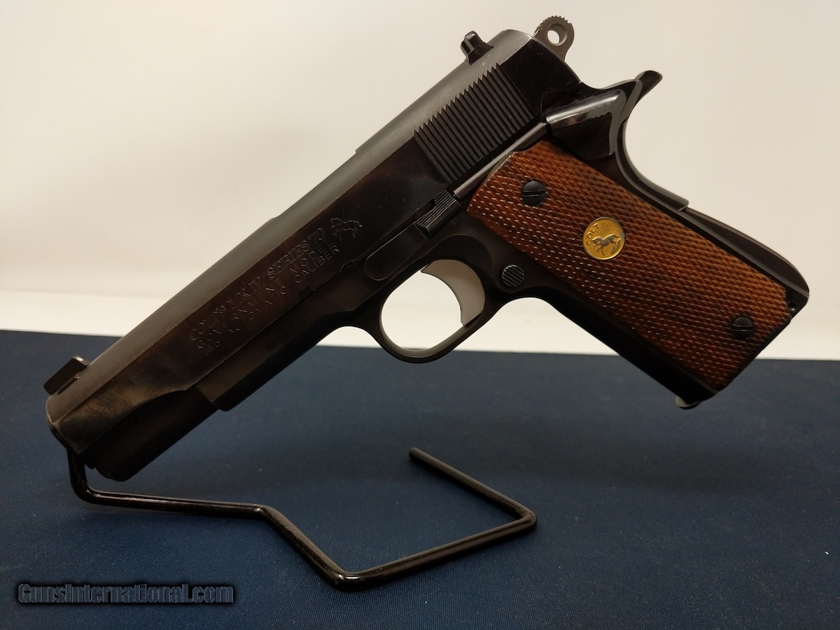 Description: Guns Listing ID: 827421 Great condition Colt MK IV! One 7rd magazine, 70 series, lightened trigger, national match trigger, national match sights and bushing in it, commander hammer, throated and polished. 0423EIZ SOLD Manufacturer: COLT Model: 1911 Government MK IV Series 70 Caliber Info: 45 Condition: Used - Non-Certified Barrels: 4 BARREL Finish: BLACK AND WOOD |