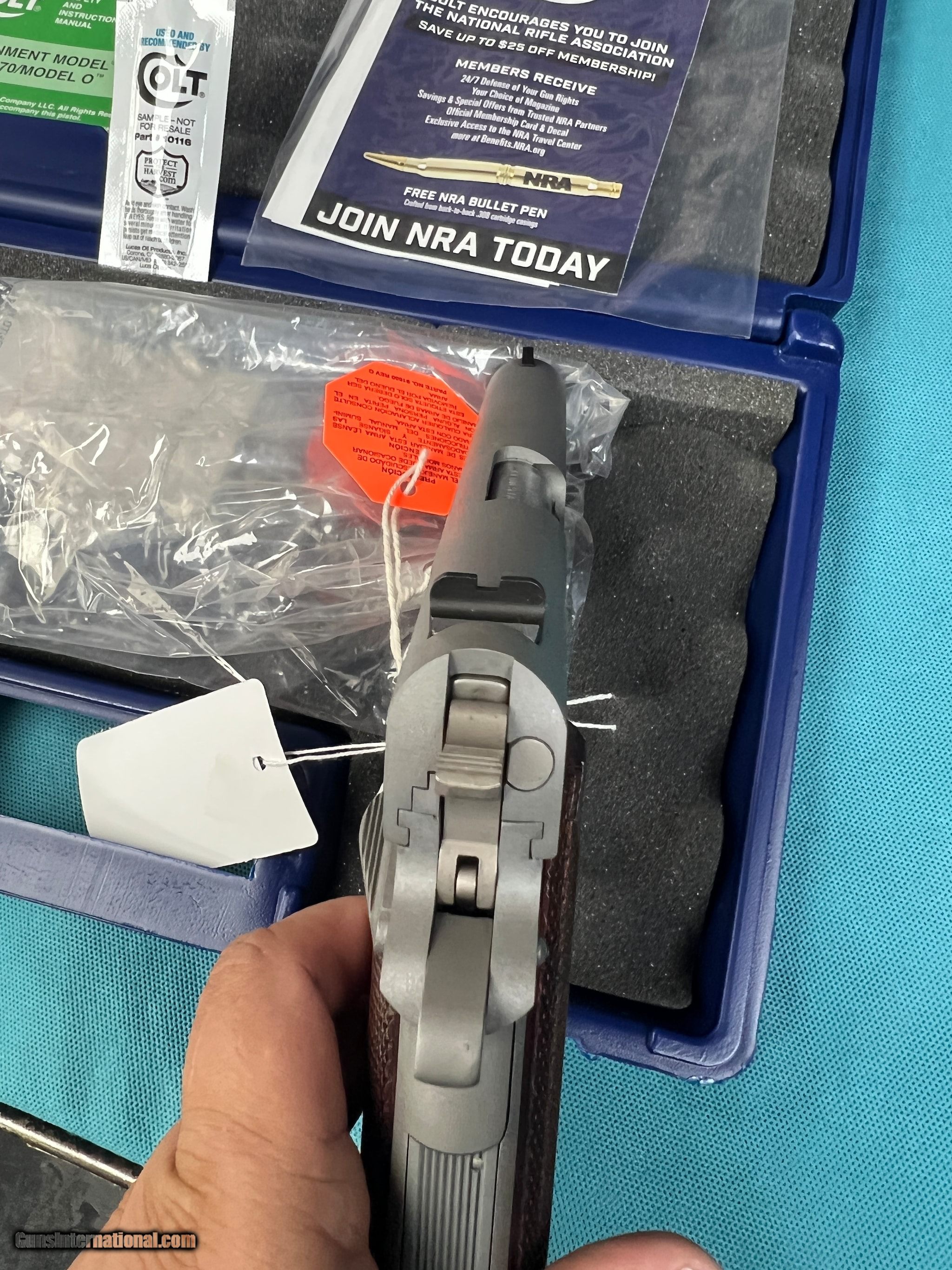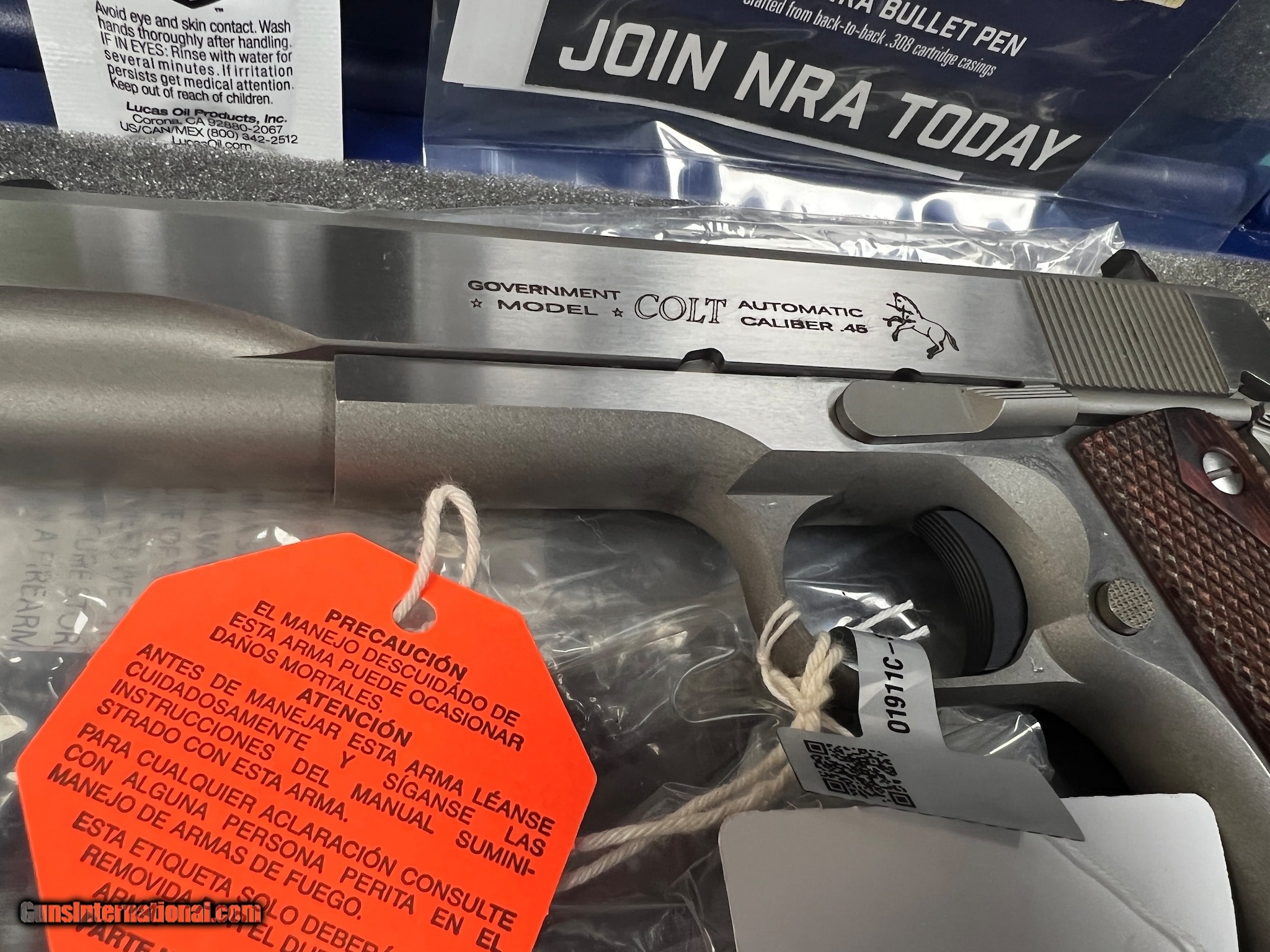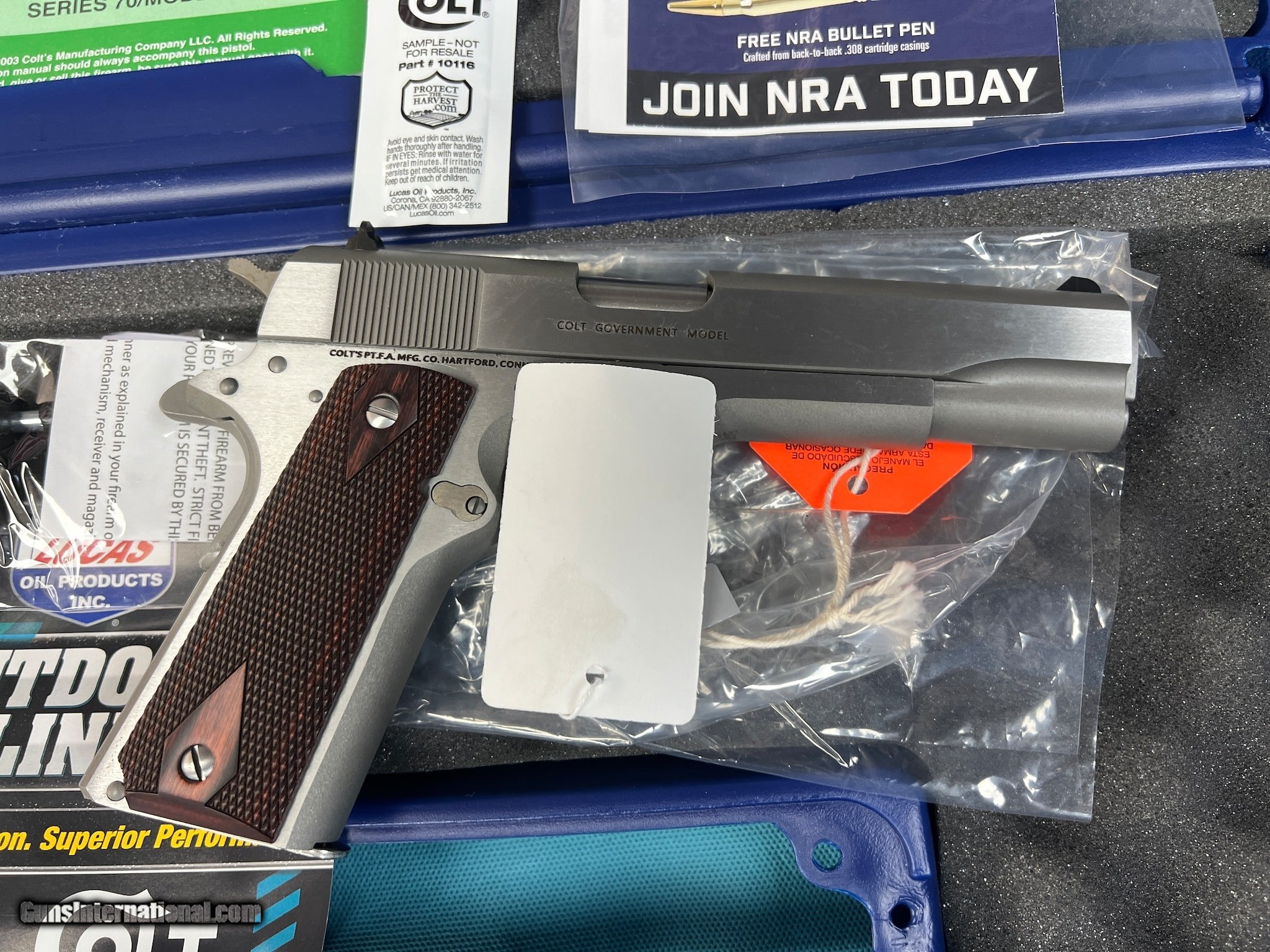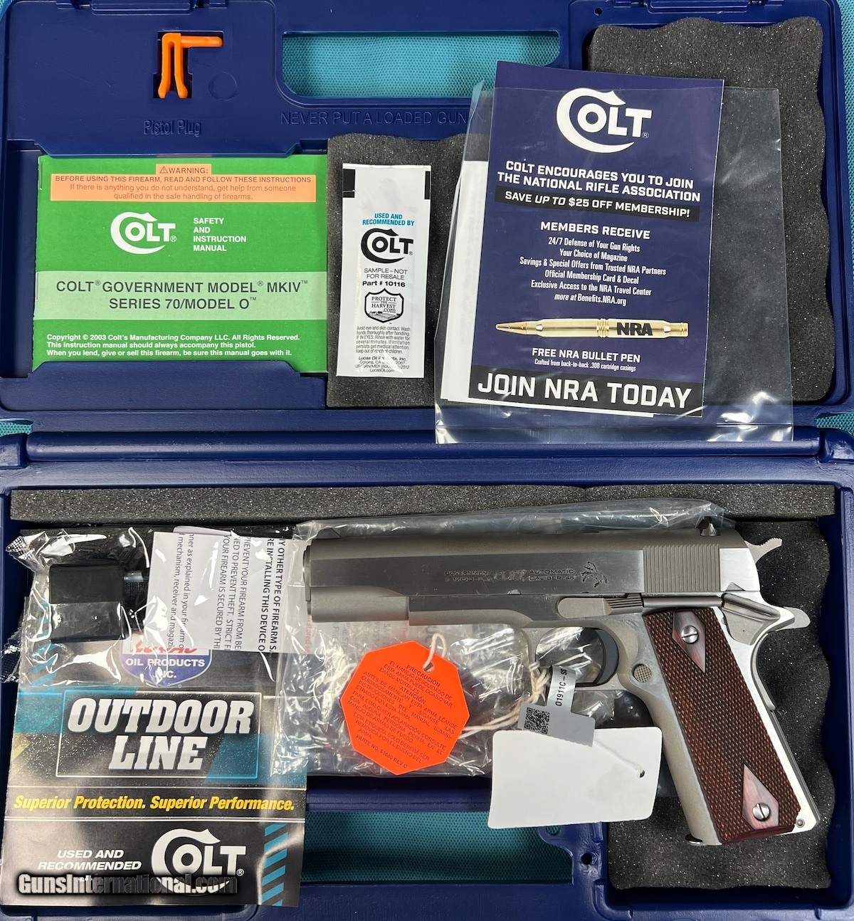 Description: Guns Listing ID: 518097 *************INCLUDES************** ONE COLT 8 ROUND MAGAZINE IN ORIGINAL BOX When you think of a 1911, you think of Colt. A tribute to the revered Commercial Government Model pistols of the past, the 1911 Classic features the Series 70 firing system and rollmarks, national match barrel, staked on front sights, and spurred hammer. Corrosion-resistant stainless steel and chambered in .45 ACP, this firearm is a pure and simple 1911 designed for you to make it your own. SOLD Manufacturer: COLT Model: 1911 GOVERNMENT MODEL 45 ACP SERIES 70 Caliber Info: .45 ACP Condition: Used - Non-Certified Barrels: 5 BARREL Finish: STAINLESS |