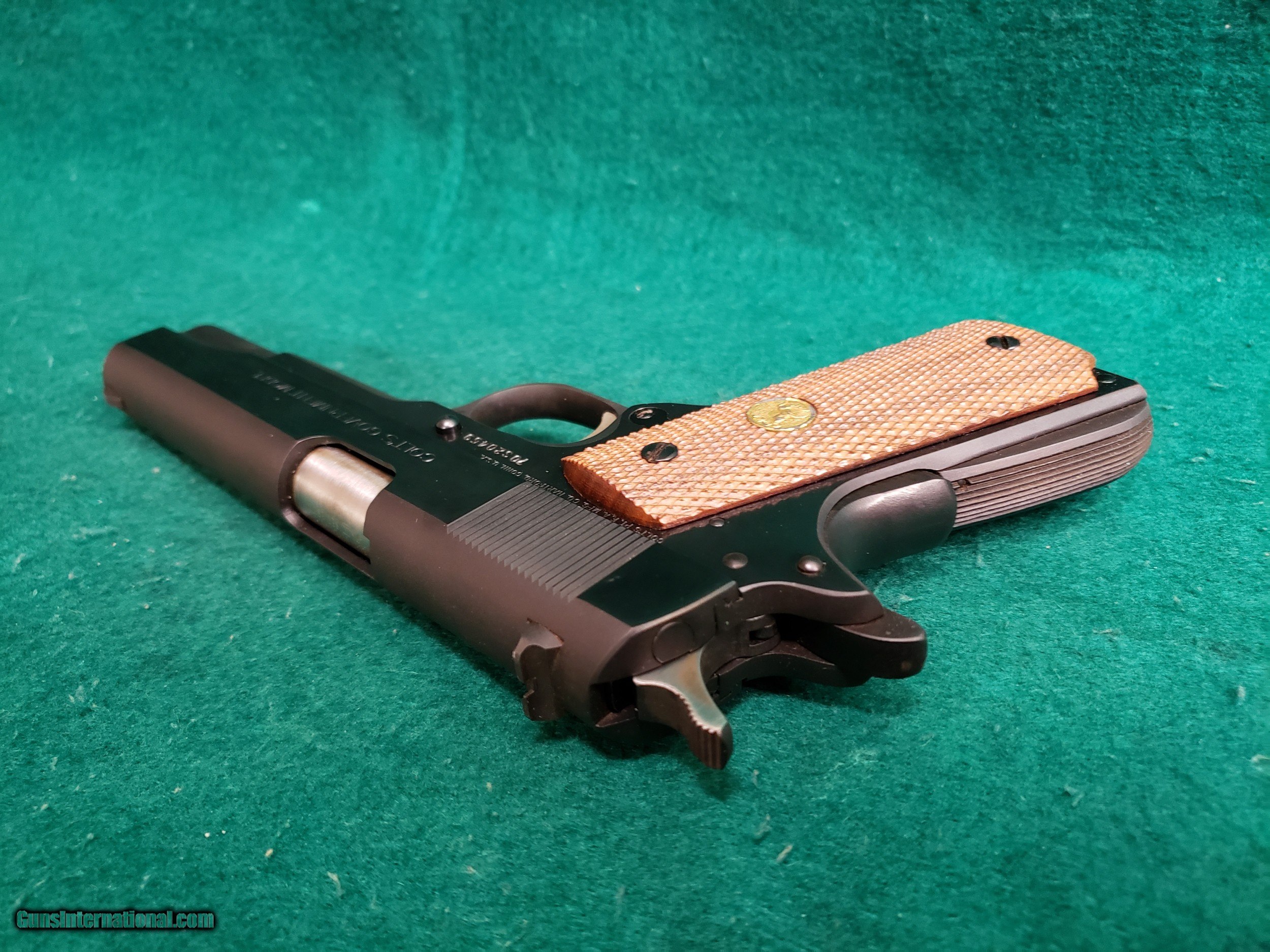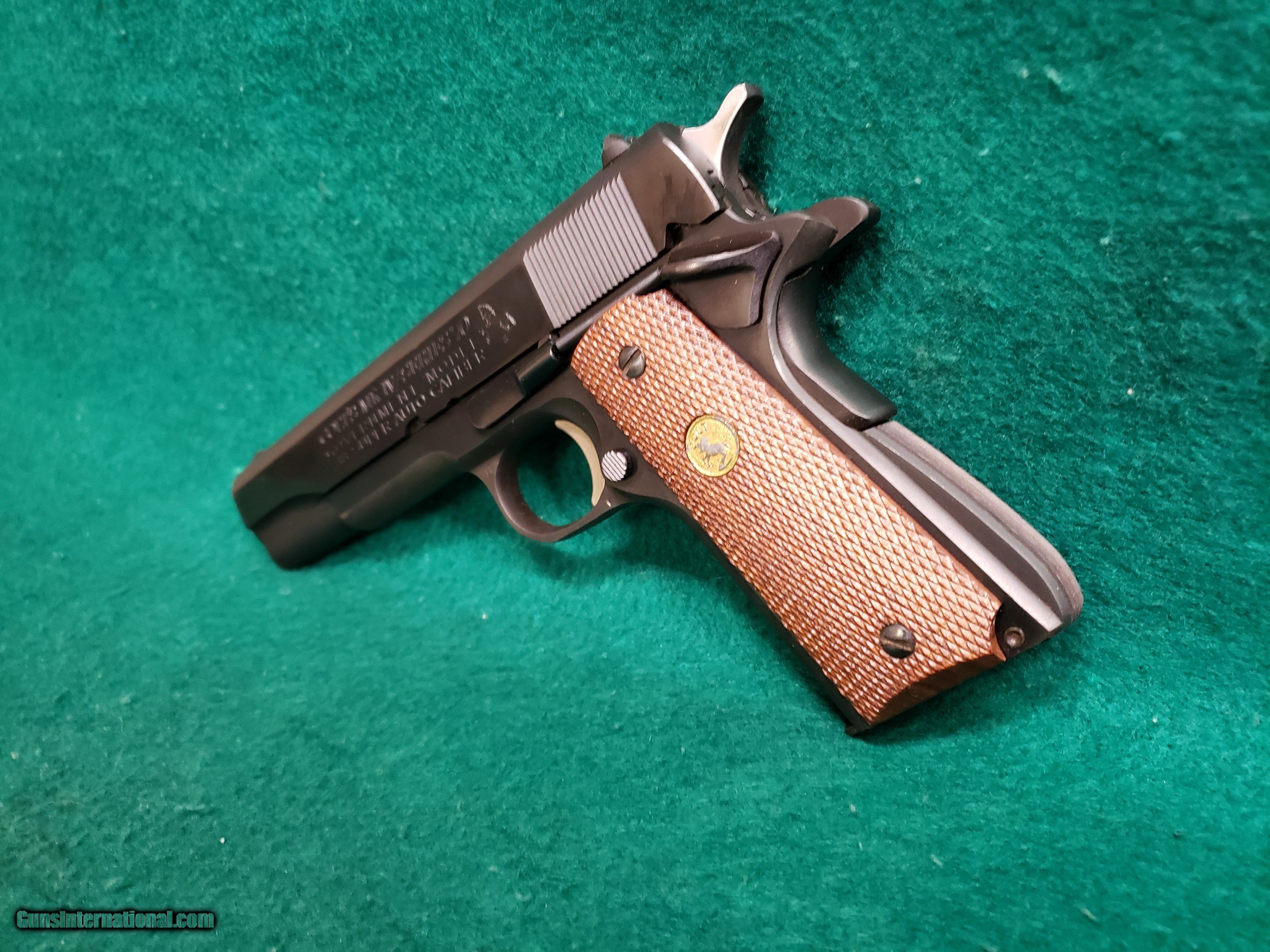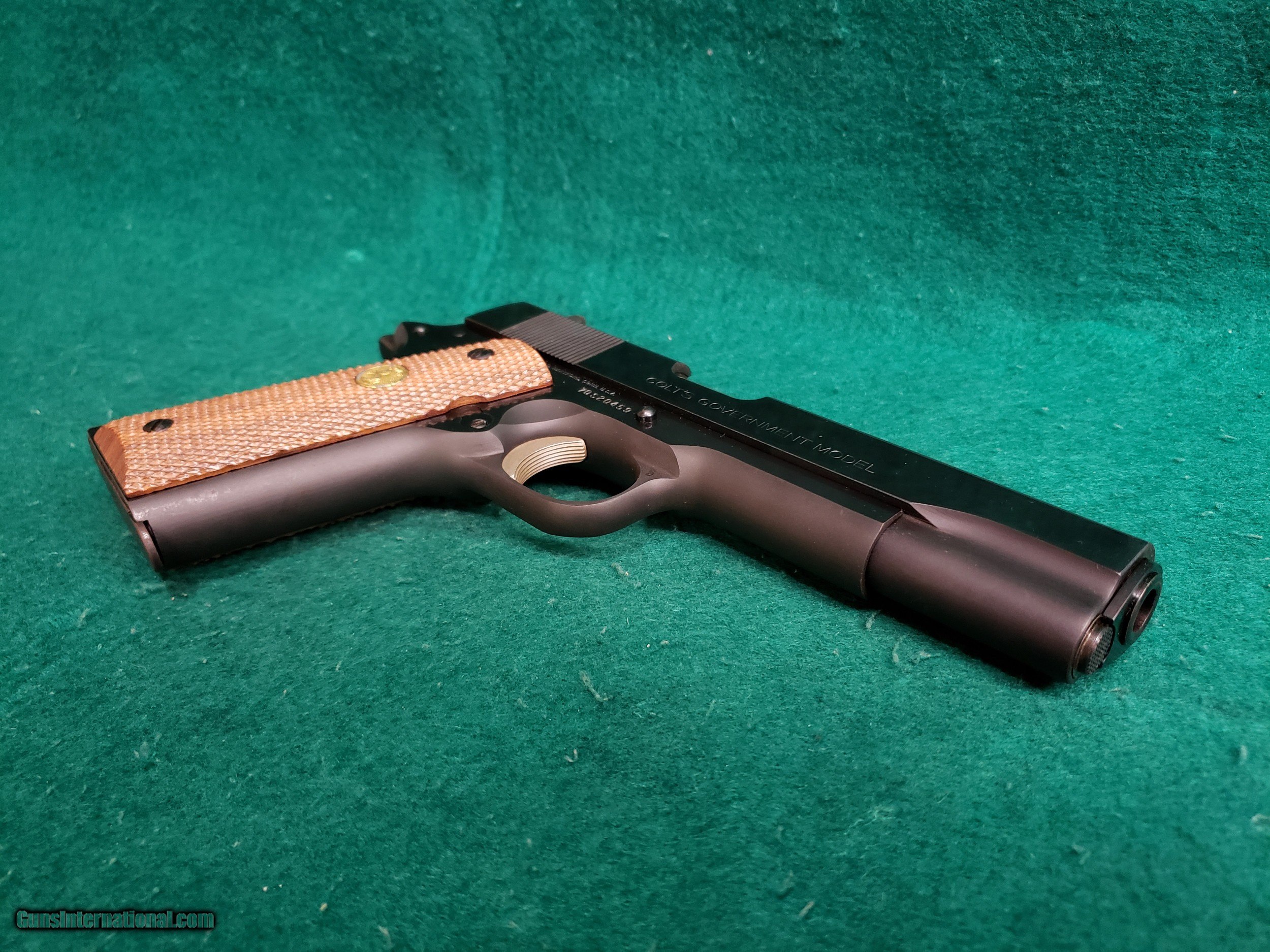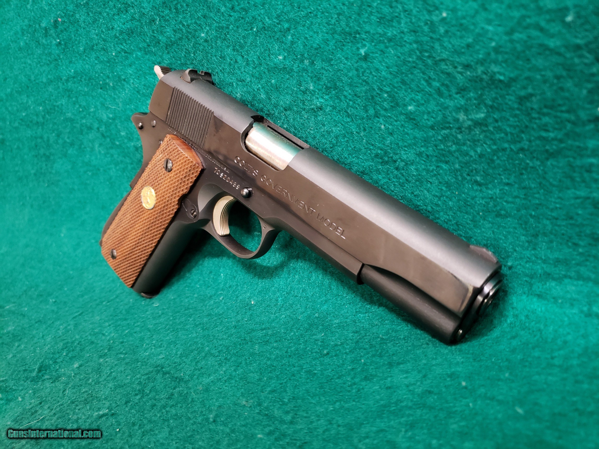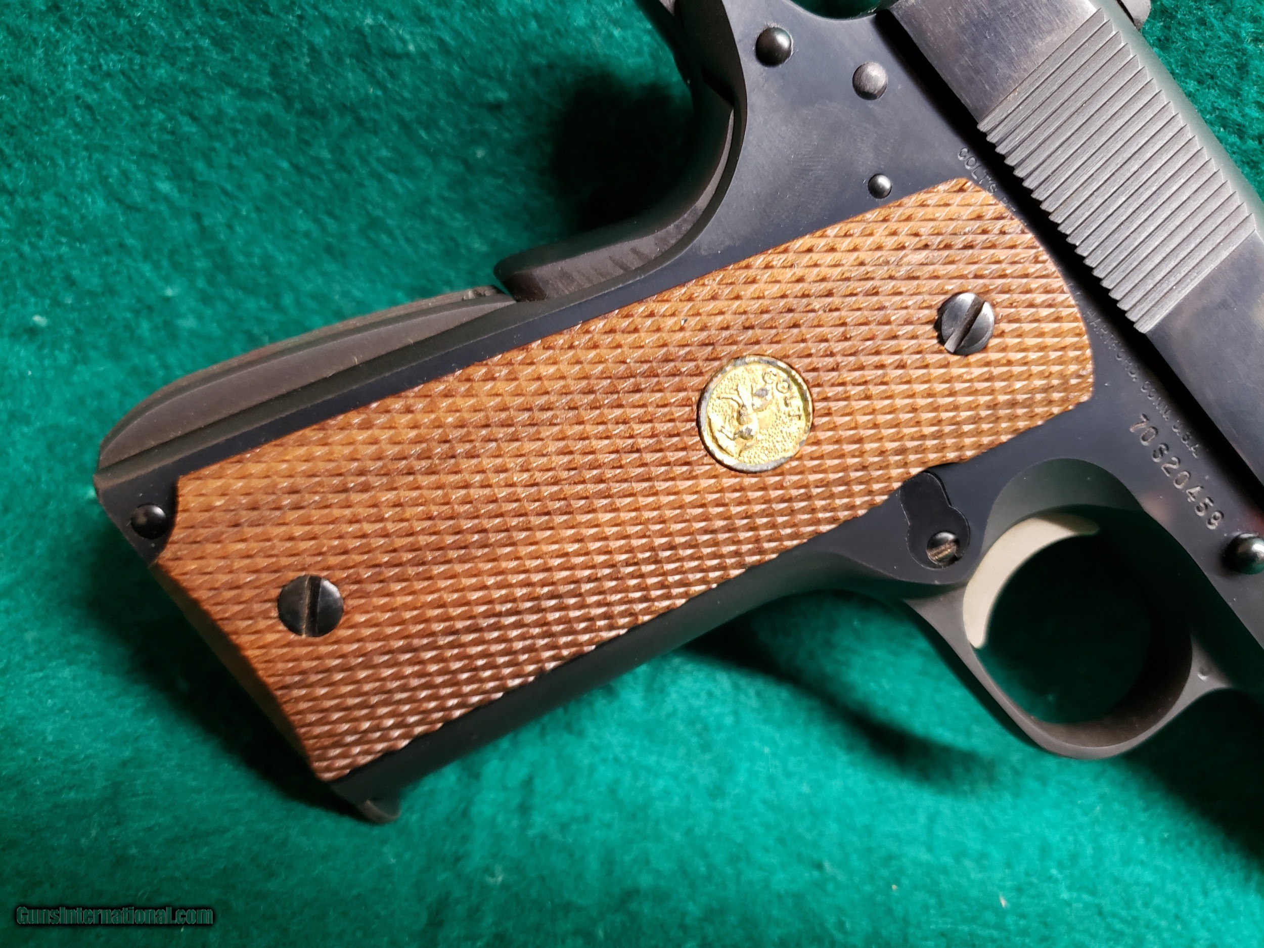 Description: Here is a very nice vintage Colt 1911! This is a Mk IV/Series 70 Government Model chambered in .38 Super. Built in 1977. Comes with one original Colt magazine. Has a 5 inch barrel with a minty bore that has excellent sharp crisp rifling. The original blued finish looks excellent for being over 40 years old! I would call it 95%. The finish looks much better in person than in the pictures. The pictures caught some glares and smudges that are not actually present on the gun. This beauty also works excellent and has a nice crisp trigger and good slide to frame fit. Still has the original collet style barrel bushing. Overall this gun doesn't appear to have many rounds fired through it and it is a very nice example of a vintage Series 70 Colt 1911. The original Colt checkered wood grips are in great shape also. See our pictures and if you have any questions please call Justin or Ben at Olde West (530)243-8334. Shipping will be $35 insured within the USA only. NOTE: THIS FIREARM IS NOT LEGAL FOR SALE TO CALIFORNIA RESIDENTS -There Will Be a 3% Processing Fee Applied to all Credit Card Transactions -California Residents Will be Required to Pay Sales Tax of 7.25% -All Firearms Shipped and Insured Within the USA. Shipping Fees Calculated to Lower 48 States. Alaska and Hawaii May Cost Extra -NO INTERNATIONAL SALES -Handguns Ship USPS Priority and Long Guns Ship UPS Ground Unless Otherwise Requested -Shipping Can be Combined to Save You Money if You Purchase Multiple Guns of the Same Type (E.G. Pistols or Long Guns) -Please Message me for a Shipping Quote if the Listing Does not Specify a Rate -Many Handguns are Not Legal for Sale in California. Please Check the Item Description and California DOJ Handgun Roster -C&R Eligible Firearms May not be Shipped to C&R Holders Within California. They Must be Shipped to an FFL Dealer and Picked Up From There. We can Ship C&R eligible firearms directly to C&R Holders in all Other States -We do Require Photo Identification Proving That you are at Least 21 Years of age for Antique Firearms to be Shipped Direct. We Also Require a Statement That you May Legally own Firearms -Please Check Your Local and State Laws Regarding Firearms and Magazine Restrictions Before Buying SOLD Manufacturer: COLT Model: 1911 - GOVERNMENT MODEL MK IV/SERIES 70 Serial Number: 70S20459 Caliber Info: .38 SUPER Condition: EXCELLENT Bore Condition: EXCELLENT WITH MINTY CRISP RIFLING Barrels: 5 INCH Action: SEMI-AUTO Finish: ORIGINAL BLUED - 95% OR BETTER Manufacture Date: 1977 Extras: W-ONE OEM MAGAZINE Case: N/A |