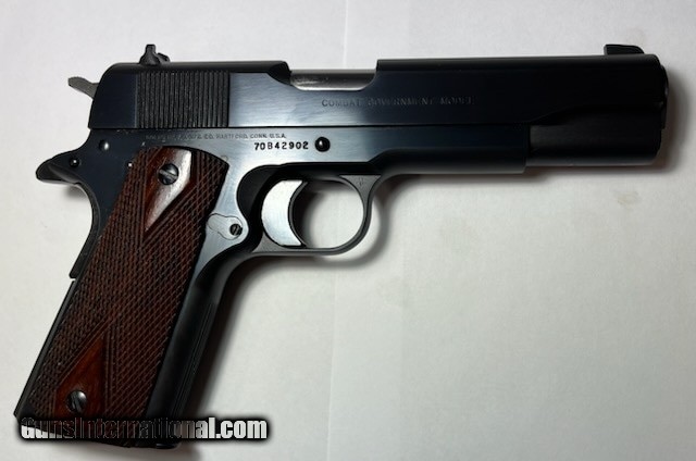 Description: Guns Listing ID: 944176 This is a Colt 1911 Government Model MK IV Series 70 .45acp SN: 70B42902 . This Comes with original box, original paper work, and box is serial numbered to the gun. This box has one flap on the box torn off. SOLD Manufacturer: COLT Model: 1911 GOVERNMENT MODEL MKIV SERIES 70 Caliber Info: .45 ACP Condition: Used - Non-Certified Barrels: 5 BARREL Finish: BLUE |