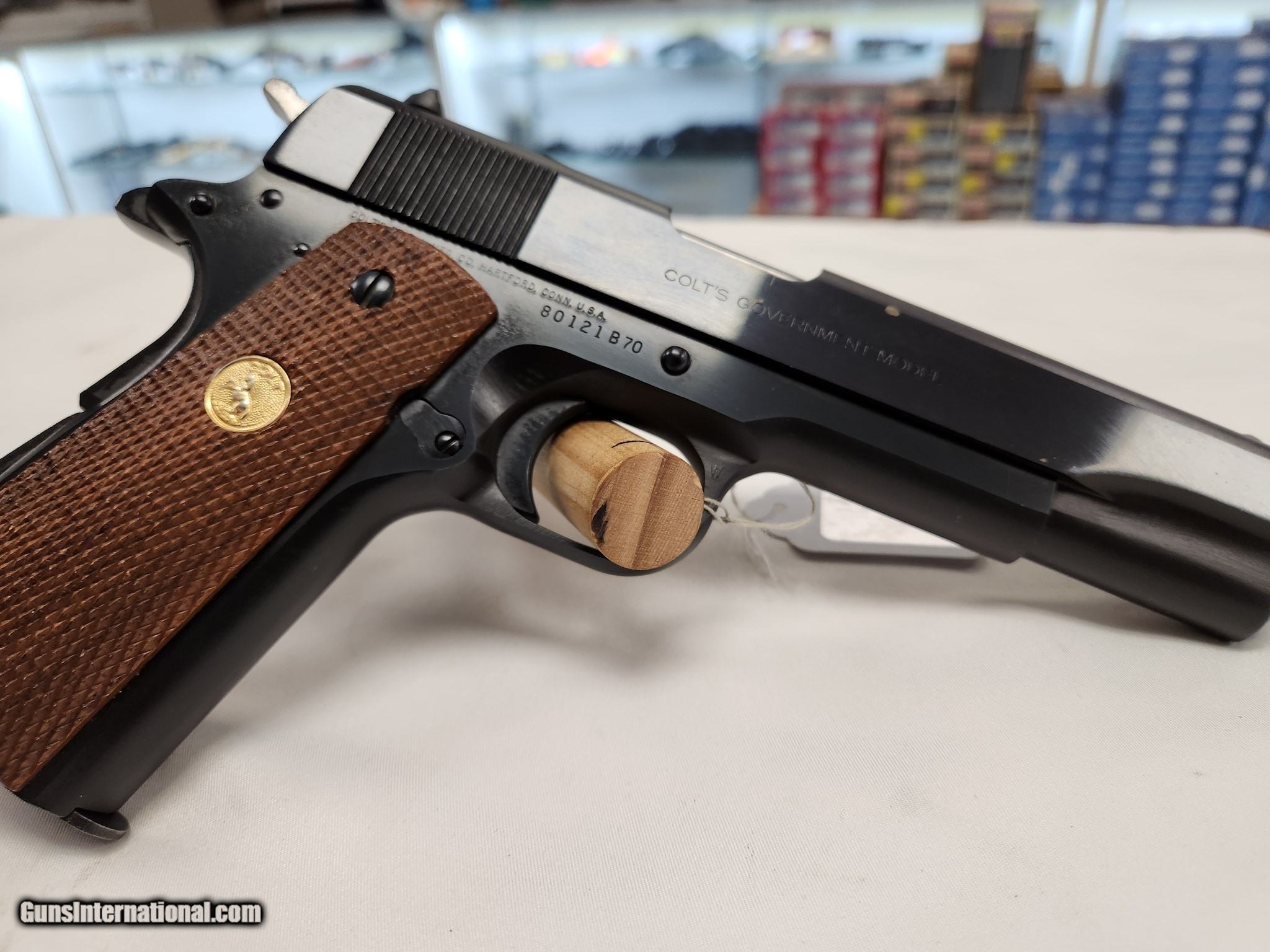 Description: Guns Listing ID: 1127069 Beautiful 1981 colt mark iv series 70 government model! This pistol is in beautiful shape considering it‚‚s age almost 44 years old! What better way to own a part of classic Colt history than to pick this beautiful 45 acp! no box but this pistol is in very good condition with a few small marks ,,, in pictures SOLD Manufacturer: COLT Model: 1911 GOVERNMENT MODEL MKIV SERIES 70 Caliber Info: .45 ACP Condition: Used - Non-Certified Barrels: 5 BARREL Finish: BLUED |