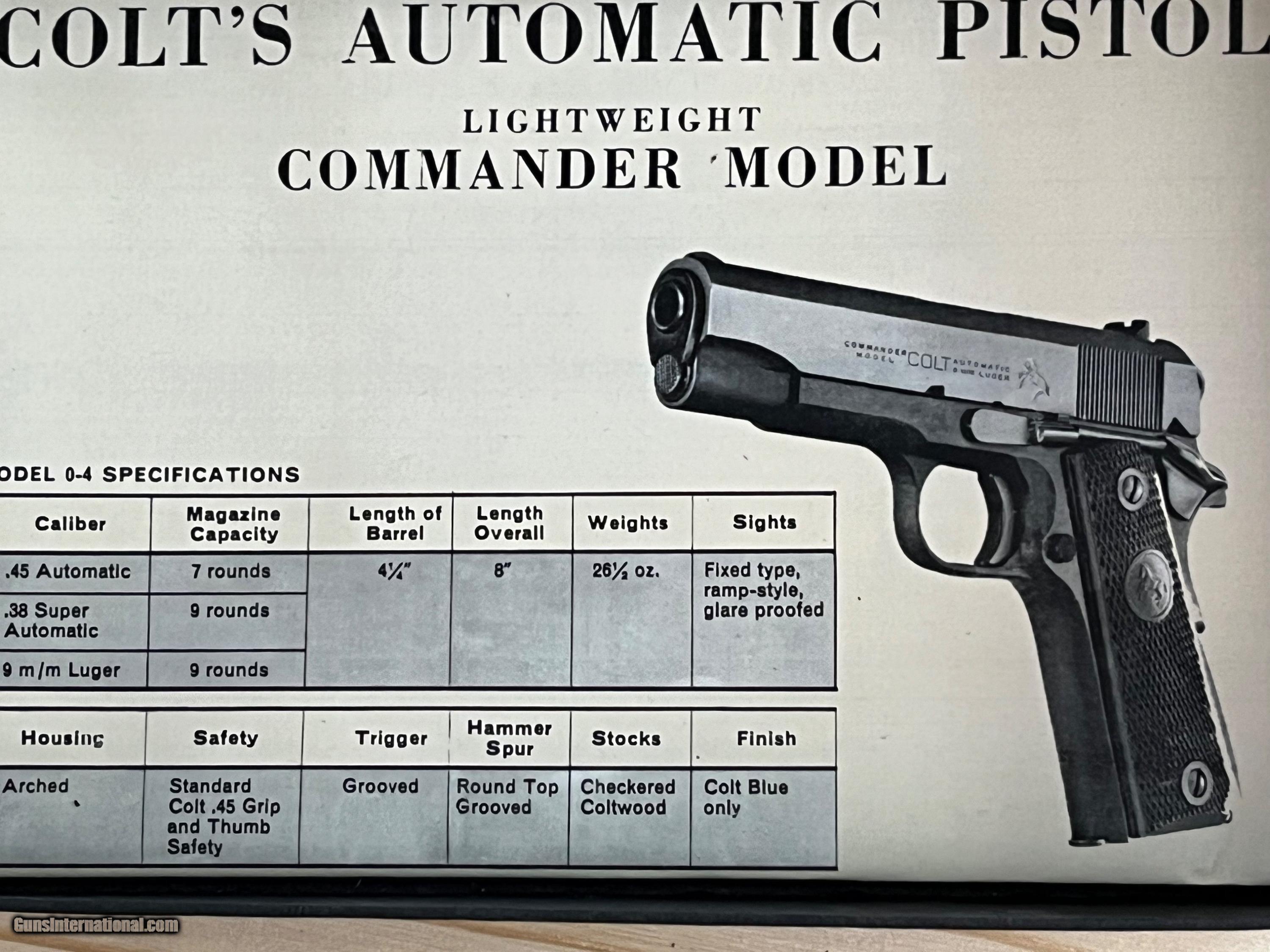 COLT 1911 LIGHT WEIGHT COMMANDER 38 SUPER , NICKEL FINISH ~ MADE 1955 ~