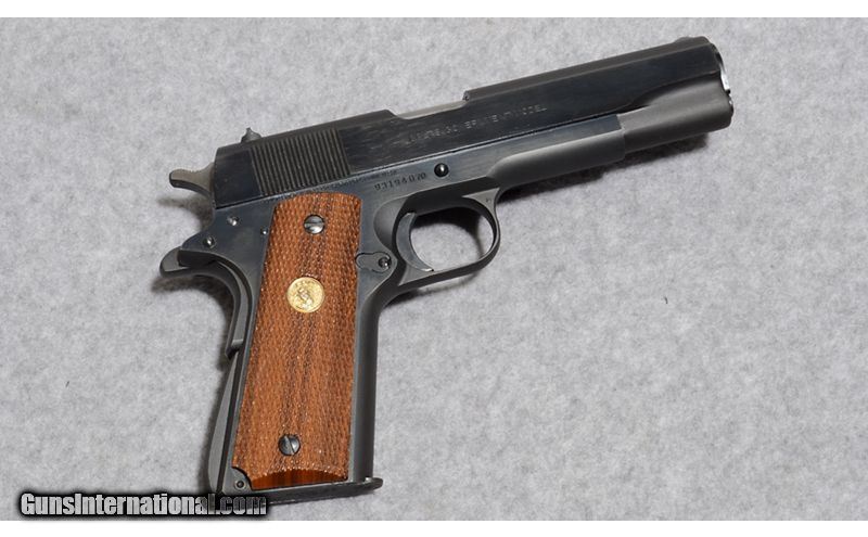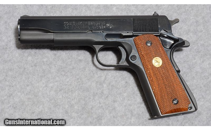 Description: The Colt MK IV Series 70 was an improvement over the M1911A1/Government Model by redesigning the barrel bushing to grip the barrel and give the production gun much improved accuracy. These "collet" bushings worked well but were prone to breaking due to being smaller than the slide diameter, hence the original bushing was made standard once again in in 1988. Colt's Patent Firearms Mfg. Co. is well known as the original and most recognized maker of 1911-type pistols. Ever since the design's military acceptance in March of 1911, and the beginning of production in January of 1912 Colt has never ceased manufacturing pistols based off the original 1911 design, known in commercial trim as simply the Government Model. .45 Auto SOLD Chambers: Semi Automatic Metal Condition: Excellent Wood Condition: Excellent Wood Factory Grips Bore Condition: Excellent Barrels: 5 Triggers: Factory Trigger Weight: 2.5 lbs Sights: Fixed Sights Item Location: Tulalip, WA |