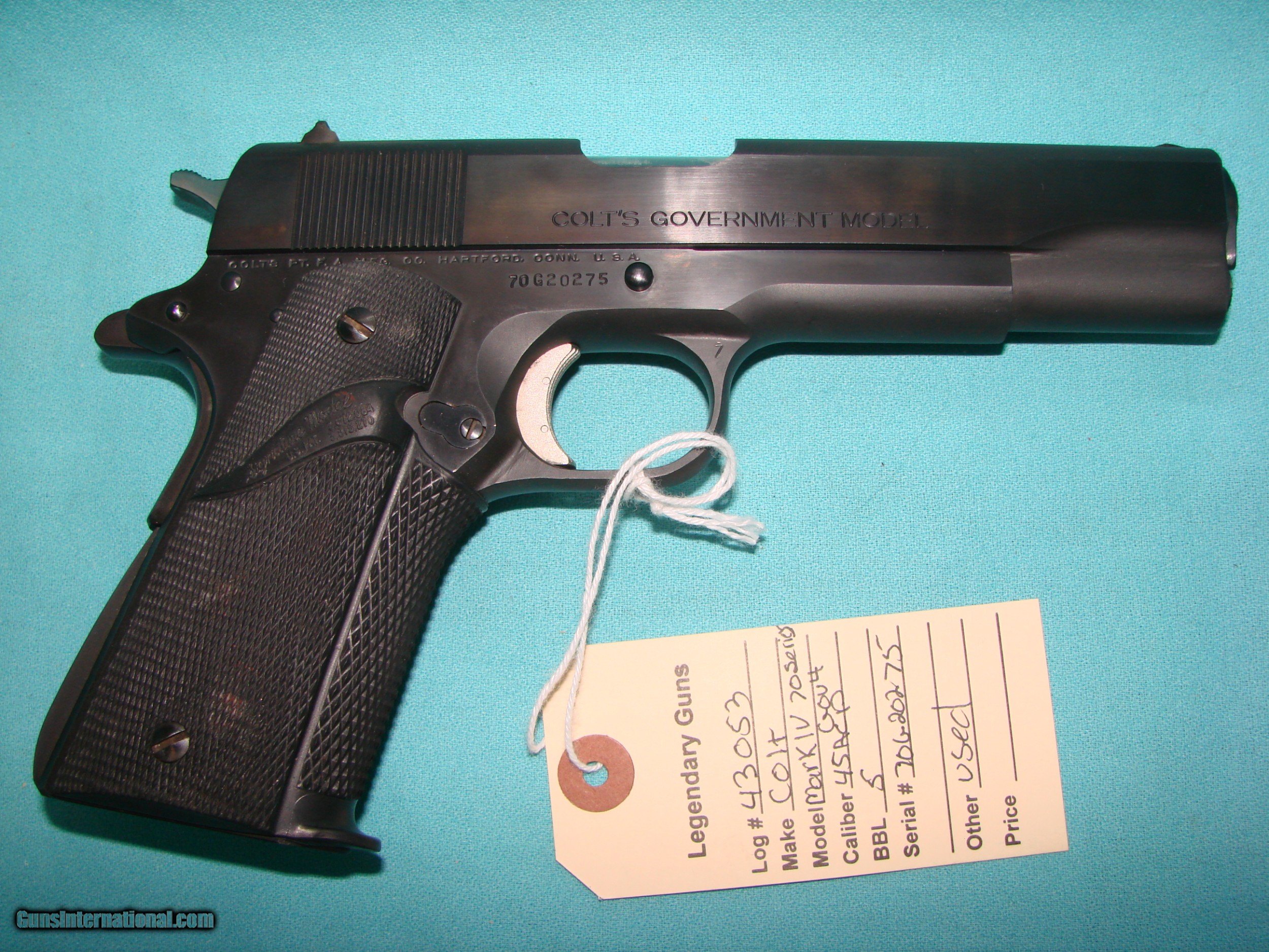 Description: Colt 1911 Series 70 MkIV in 45ACP with 5" barrel,pachmyer grips, Made in 1972. Blued finish. Pistol is used in very good condition, no box. *Legendary Guns in Phoenix AZ 602-242-1195 Hours of operation Tuesday-Friday 10-6 Sat 10-5 Closed Sundays & Mondays *We accept all Major credit cards. We DO NOT charge an additional fee for Credit Cards. We also accept Postal Money orders or Certified Bank Checks{Check & Money order payments must arrive within 7 days of initial agreement and will be held for 3 days before items are shipped} *Shipping is $50 for rifles/shotguns {AK & HI Extra} and $35 for handguns. Arizona Residents Must Pay Sales Tax. We DO NOT ship Internationally. *We offer a 60 day layaway on purchases of $500 or more. Items require 1/3 of the total price as down payment which is NON-REFUNDABLE and you have 60 days to pay off the balance. *Please call or email with any questions and to confirm availability before buying. We are happy to answer all questions. All items listed are also for sale at our Phoenix, AZ location *We offer a 3 day inspection period on USED FIREARMS ONLY, We accept returns within the 3 day inspection period with NO REFUNDS ON SHIPPING CHARGES and a 10% restocking fee. *Trades are welcome for customers who can visit our Phoenix, AZ location, We DO NOT engage in online or mail in trades. SOLD Handgun Caliber: .45 ACP (.45 Auto) Manufacturer: Colt Model: 1911 Condition: Used |