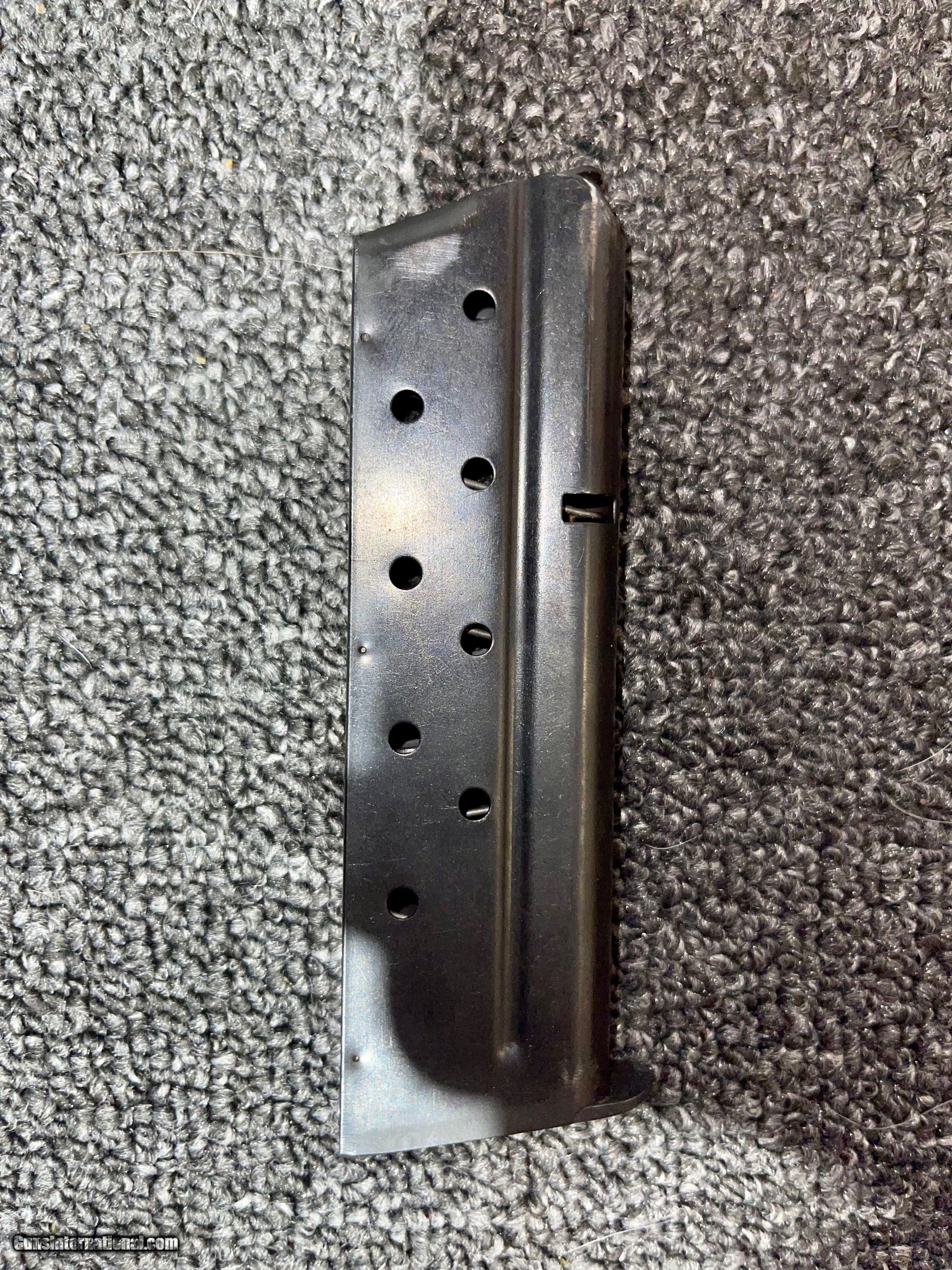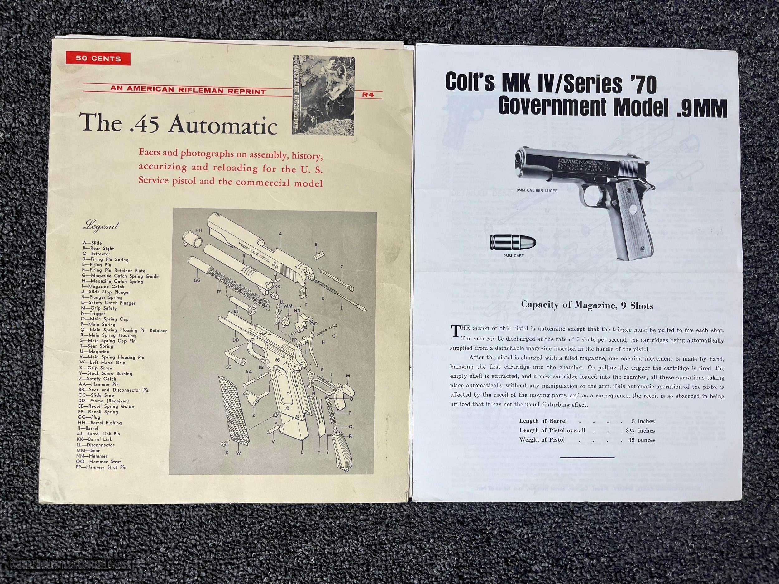 Description: Colt 1911 Series 70 9mm With Bushnell Magnum Phantom Scope Beautiful fun shooter in great shape! It comes with the original matching left grip if you wanted to take off the scope. Also included is the original feaux wood grain box, manuals, and one mag. This gun dates to 1971 making it one of the first Series 70s produced. That fact also makes it good for C&R! ****WE ARE ALWAYS BUYING AND ARE VERY EXPERIENCED IN ESTATE SALES TOO. LET US KNOW HOW WE CAN HELP!**** PAYMENT: -Payment must be recieved within 10 days of purchase. 3% additional charge for credit card processing. SHIPPING & HANDLING: -$30 for handguns and $45 for long guns SHIPPING FIREARMS: -Firearms shipped to FFL dealer only -We will ship upon receipt of payment and signed legible copy of dealer's FFL via Fax, Mail or E-mail. SALES TAX: -Florida residents add 7.5% sales tax. PRODUCT: -We operate a gun shop which means that every item is for sale in our store and it may have already been sold when you contact us. NEW GUNS: -On new Firearms we may use file photos instead of the actual gun. CONTACT: -Contact me with any and all questions. We want you to be happy with your purchase. PHONE #: (904) 271-5270 STORE HOURS: Mon-Fri: 11p-6pm Sat: 9a-3p BUYER: -It is Buyer's responsibility to ensure that the weapon is LEGAL to own in your city/state. SOLD Handgun Caliber: 9x19mm Parabellum (9mm Luger, 9x19mm NATO) Manufacturer: Colt |