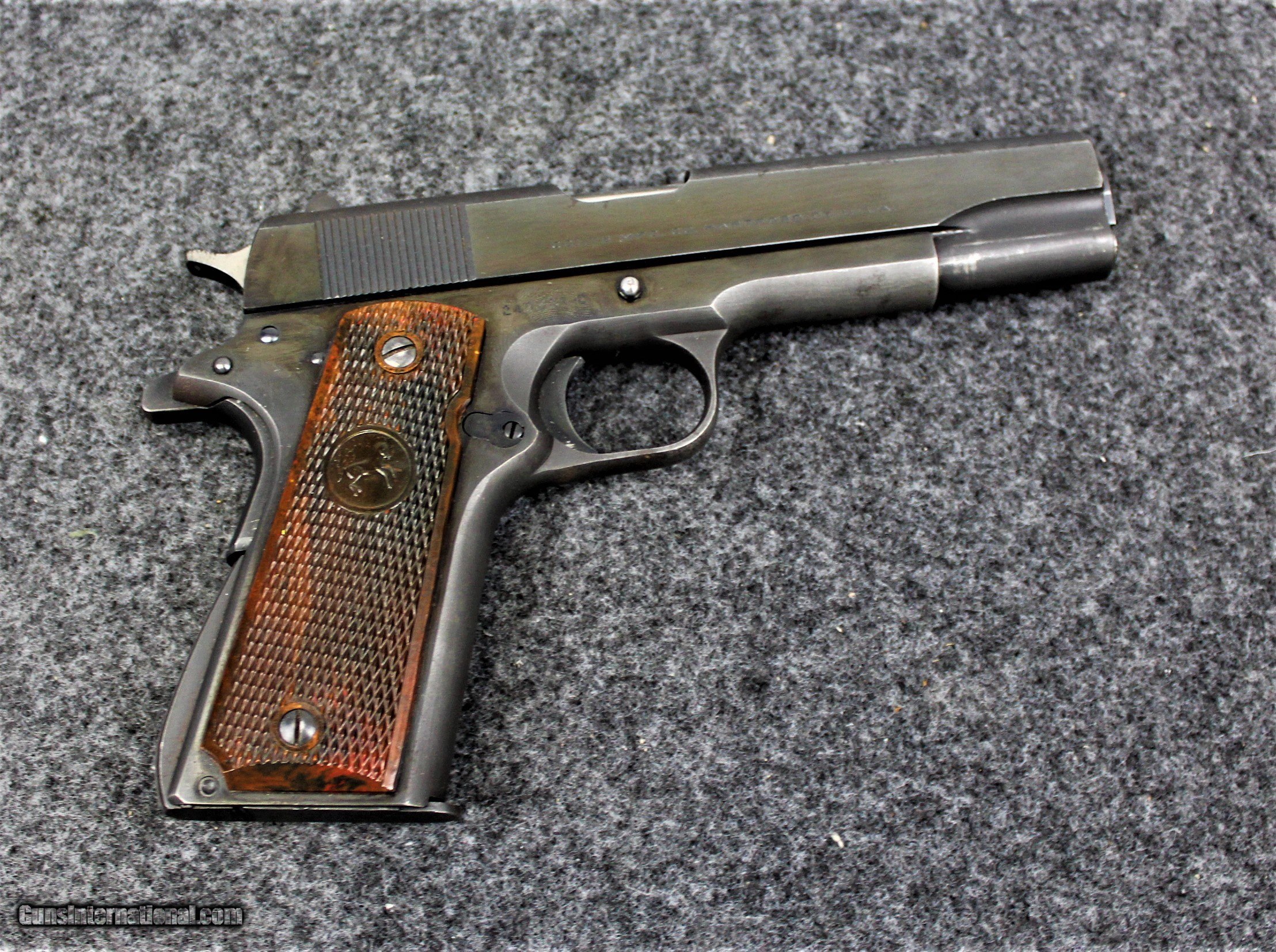 Description: Here is a nice Colt Series 70 1911 in caliber 45 ACP. included in this package is a 1911 22 Long Rifle conversion kit in the factory box. This is a hard to find combo of both the 45 and the 22 Conversion Kit. SOLD Handgun Caliber: .45 ACP (.45 Auto) Manufacturer: Colt Model: 1911 Series 70 Serial Number: 240235-C Barrel Length: 4 Inch Bore: GOOD Condition: Very Good Metal Condition: VERY GOOD Bore Condition: GOOD Action: SEMI-AUTO Triggers: SINGLE Finish: Blued Item Location: H & H SHOOTING SPORTS 400 SOUTH VERMONT SUITE 110 OKLAHOMA CITY OKLAHOMA 73108 PHONE NUMBER 405-947-3888 |