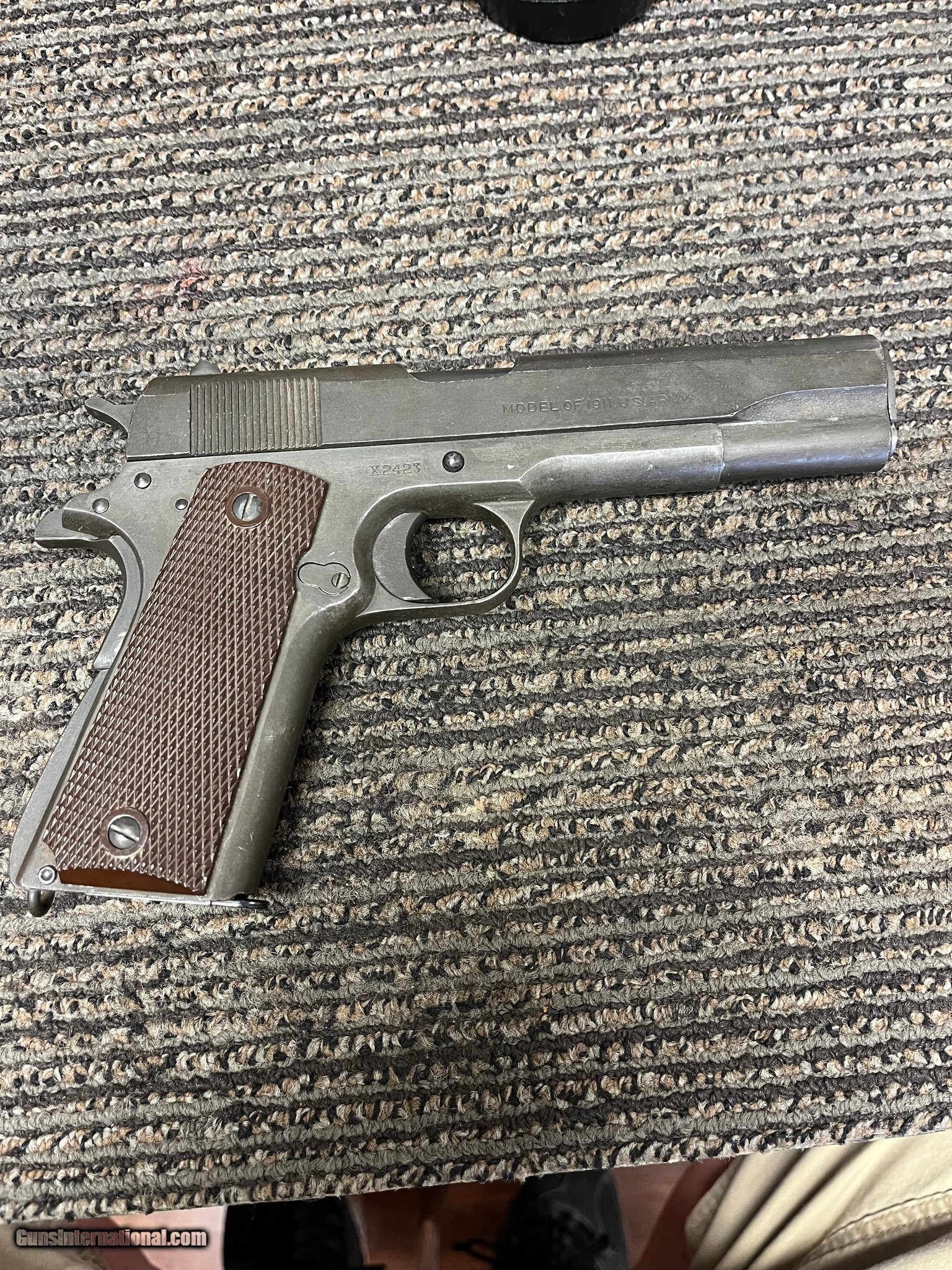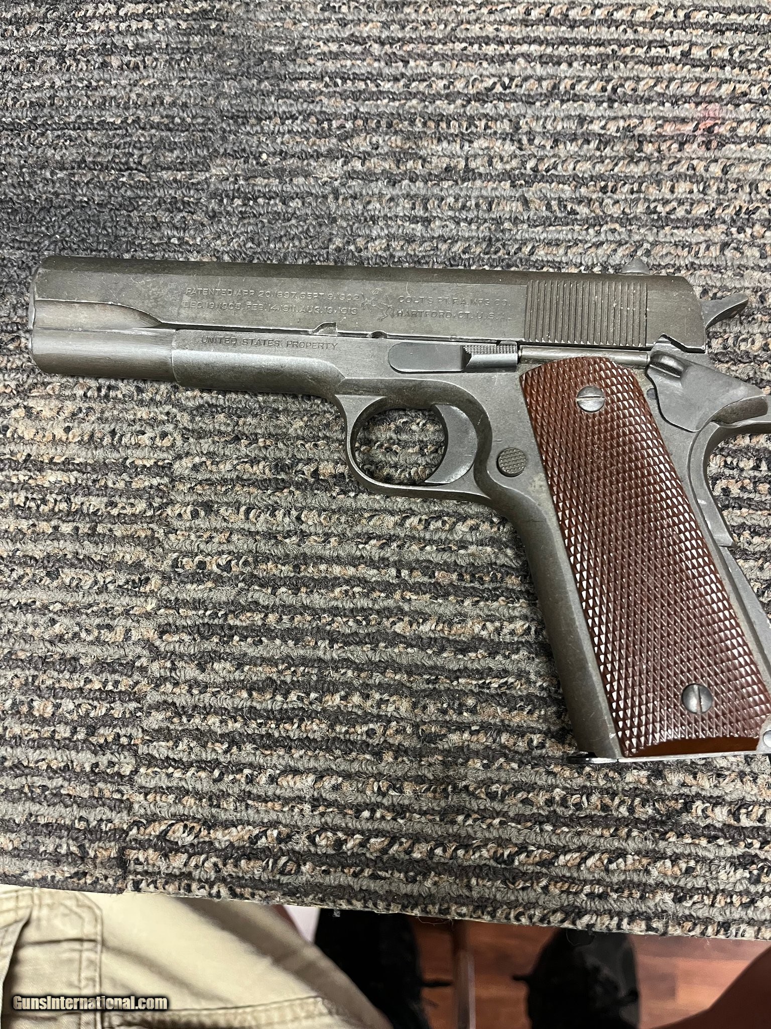 Description: Guns Listing ID: 591384 Rare Opportunity!! Early Colt 1911 Government Issue 45acp. “X" serial number. Early Frame, early slide. US Property marked. Lightly refurbed with plastic grips and a curved back strap. A great chance to own an early, not often encountered military Colt Army Model 1911. As with all surplus firearms, have a competent gunsmith check this weapon before firing. Manufacturer: COLT Model: 1911 US Property Caliber Info: .45 ACP Condition: Used - Non-Certified Barrels: 5" BARREL Action: SEMI AUTOMATIC Finish: parkerized Price: $1,800.99 Contact Seller |