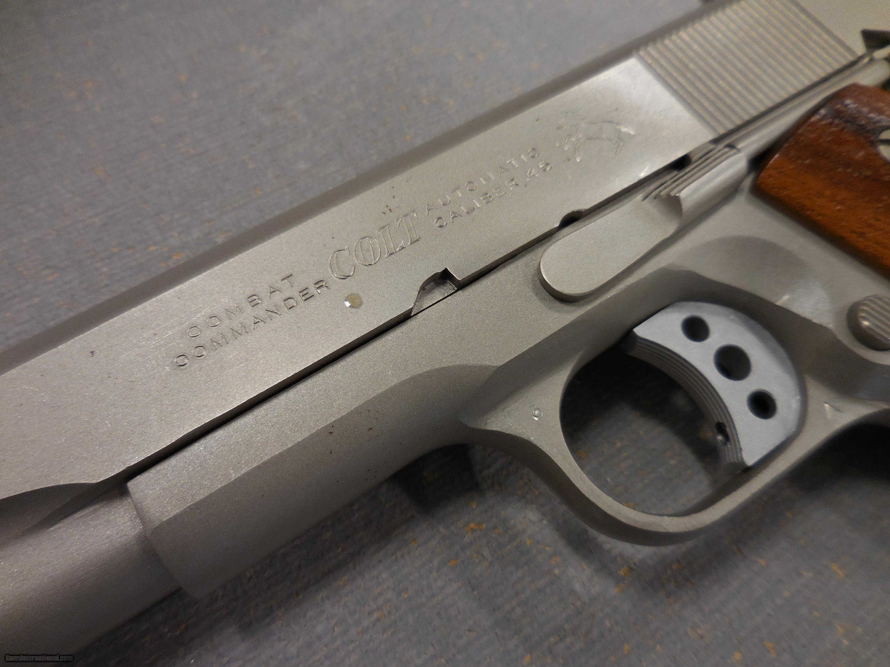 Description: HAVE A COLT COMBAT COMMANDER 70 SERIES 45ACP 4 1/4" SATIN NICKEL FINSH GUN HAS 98% ORIG FINISH NO BOX MINT BORE ORIG WOOD GRIPS CALL TO ORDER AT 401 738 1889 SOLD |
