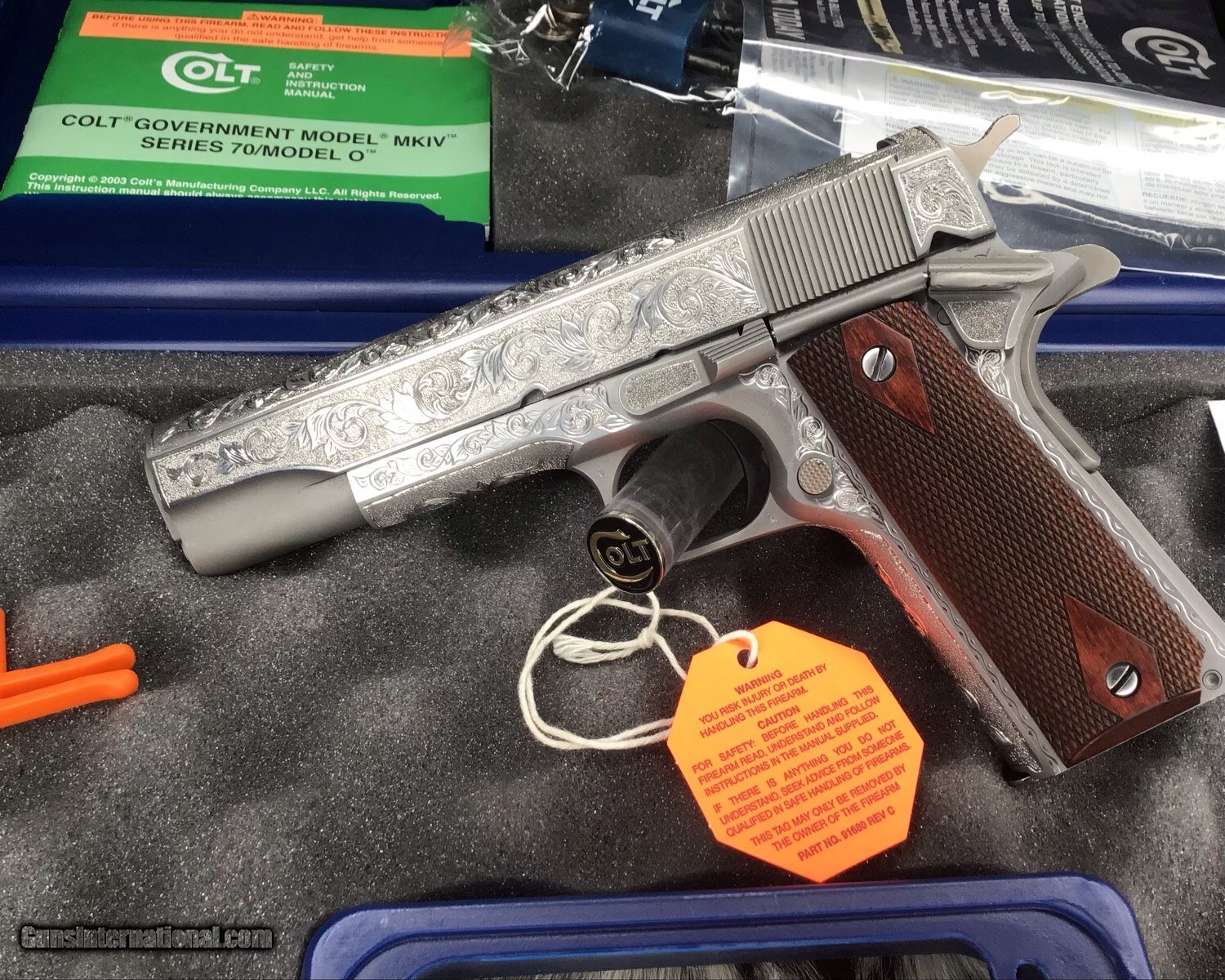Colt 70 Series Government Model Stainless, Hand Engraved, New