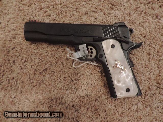 Description: COLT 1911 COMPETITION SERIES 70 FIRING SYSTEM 9MM O1972CCS WITH CUSTOM PEARLIZED GRIPS FEATURING GOLD COLT RAMPANT HORSE - BLUED FINISH, UPSWEPT BEAVERTAIL GRIP SAFETY, UNDERCUT TRIGGER GUARD, 5 INCH NATIONAL MATCH BARREL, DUAL RECOIL SPRING SYSTEM, NOVAK ADJUSTABLE FIBER OPTIC SIGHTS, MAGAZINE CAPACITY 9 ROUNDS. NEW IN BOX. SUBJECT TO PRIOR STORE SALE. SHIP TO FFL ONLY. BUYER RESPONSIBLE TO DETERMINE IF FIREARM IS LEGAL IN HIS/HER STATE. BUYER PAYS $40.00 SHIPPING TO LOWER 48 STATES. BUYER PAYS 3% FOR CREDIT CARD. ARIZONA RESIDENTS PAY 6.712% SALES TAX. SOLD Manufacturer: COLT Model: COMPETITION GOVERNMENT Serial Number: 9CCS079XX Caliber Info: 9MM Condition: New in Box |