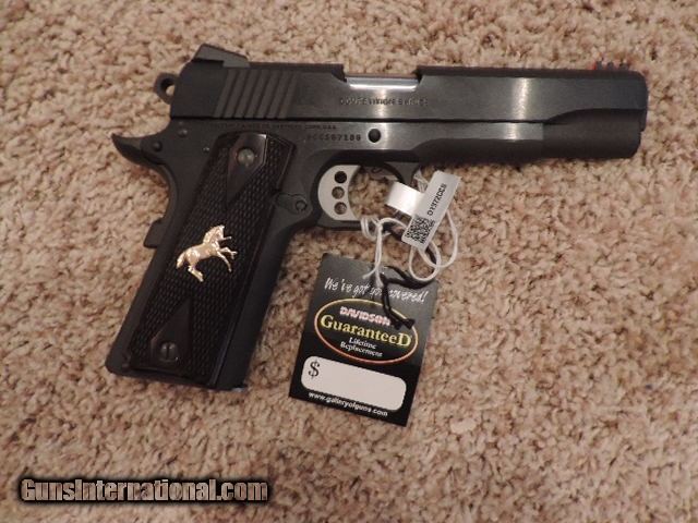 Description: COLT 1911 COMPETITION SERIES 70 FIRING SYSTEM 9MM O1972CCS WITH CUSTOM WOOD GRIPS FEATURING GOLD COLT RAMPANT HORSE - BLUED FINISH, UPSWEPT BEAVERTAIL GRIP SAFETY, UNDERCUT TRIGGER GUARD, 5 INCH NATIONAL MATCH BARREL, DUAL RECOIL SPRING SYSTEM, NOVAK ADJUSTABLE FIBER OPTIC SIGHTS, MAGAZINE CAPACITY 9 ROUNDS. NEW IN BOX. SUBJECT TO PRIOR STORE SALE. SHIP TO FFL ONLY. BUYER RESPONSIBLE TO DETERMINE IF FIREARM IS LEGAL IN HIS/HER STATE. BUYER PAYS $40.00 SHIPPING TO LOWER 48 STATES. BUYER PAYS 3% FOR CREDIT CARD. ARIZONA RESIDENTS PAY 6.712% SALES TAX. SOLD Manufacturer: COLT Model: COMPETITION GOVERNMENT Serial Number: 9CCS071XX Caliber Info: 9MM Condition: New in Box |