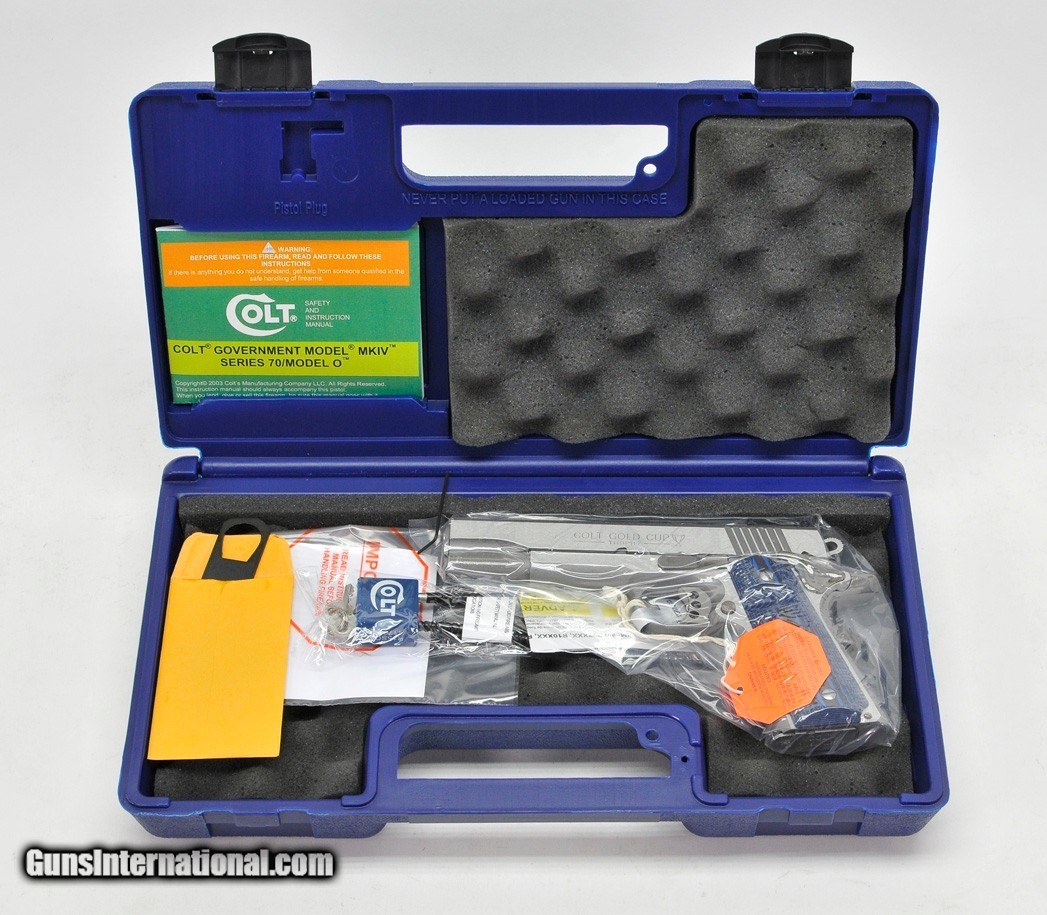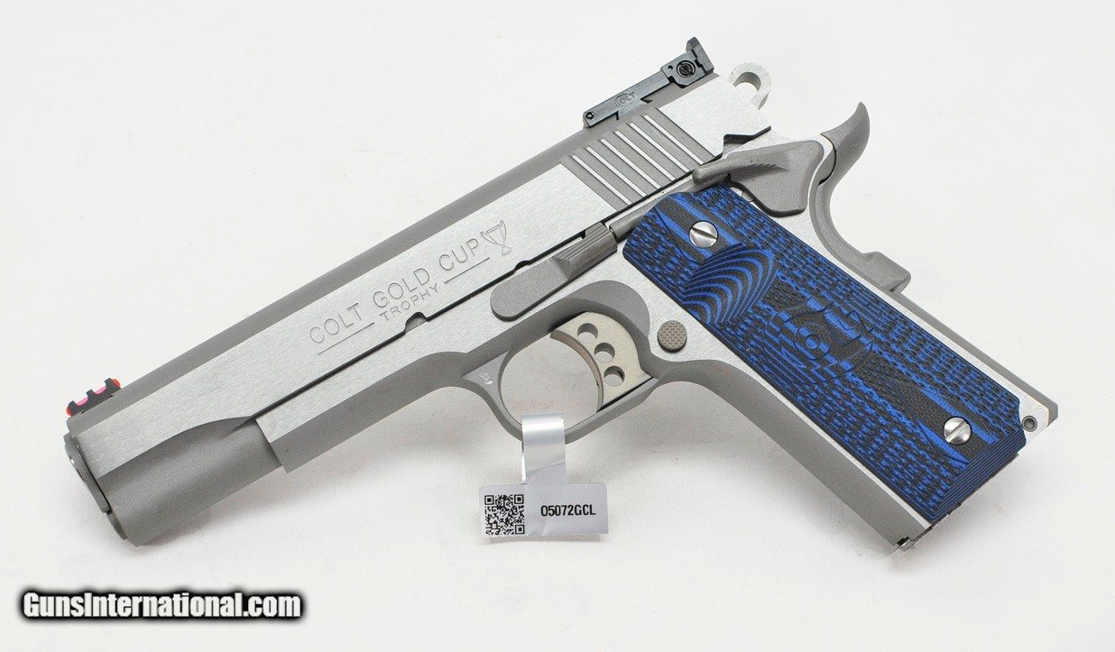 Description: Colt Gold Cup Lite. Model O5072GCL. Series 70. 9mm. BRAND NEW In Hard Case. AVAILABLE FOR PURCHASE AT OUR ON-LINE STORE The Colt Gold Cup is known as the finest shooting semi-automatic in the world, and is the standard for competitive guns. The first Colt Gold Cup pistol was introduced in the late 1950’s to give competitive shooters a gun to take directly from the dealer’s showcase to the firing line. Colt Gold Cup pistols have been used to compete in local club matches through the National Matches at Camp Perry. It features an Adjustable Wide Trigger, National Match® Barrel, Adjustable Target Sights, and many other refinements as standard. Ad uses stock images. Serial number for this firearm is #GV014764 Specifications