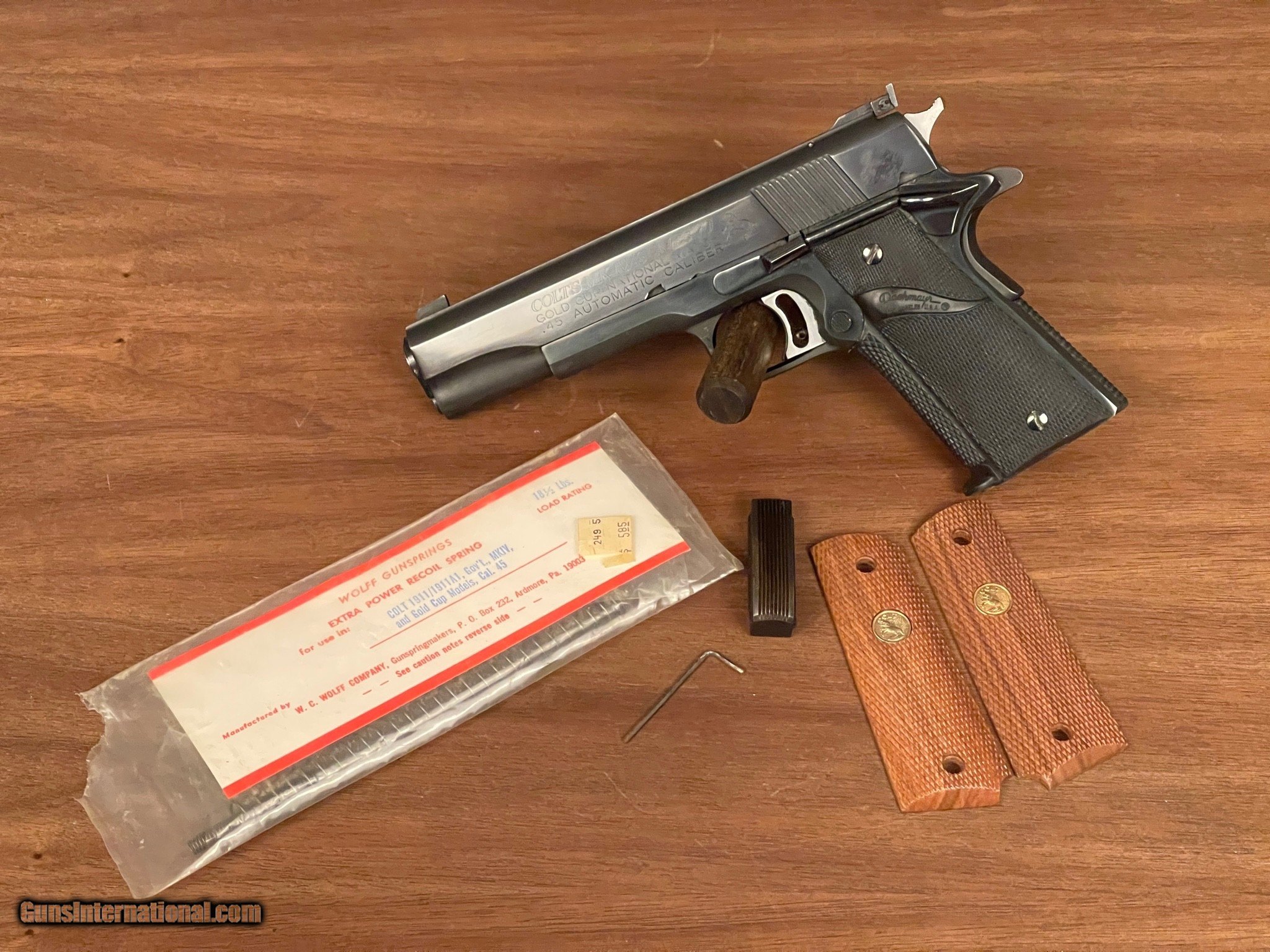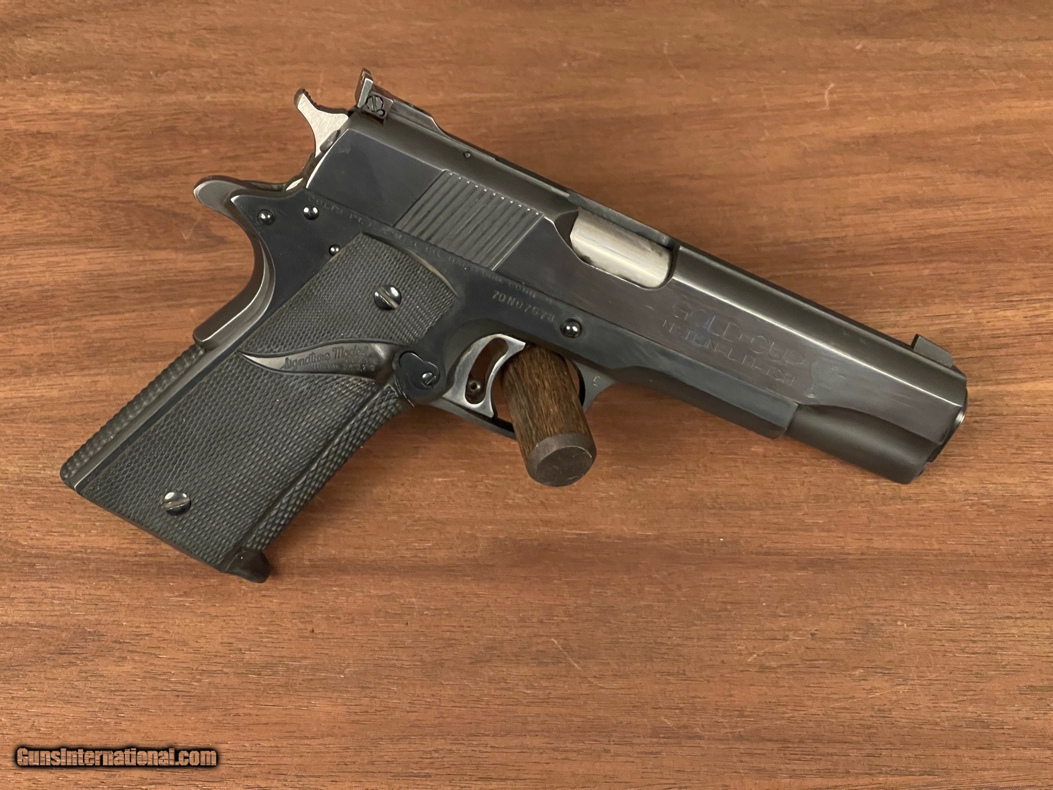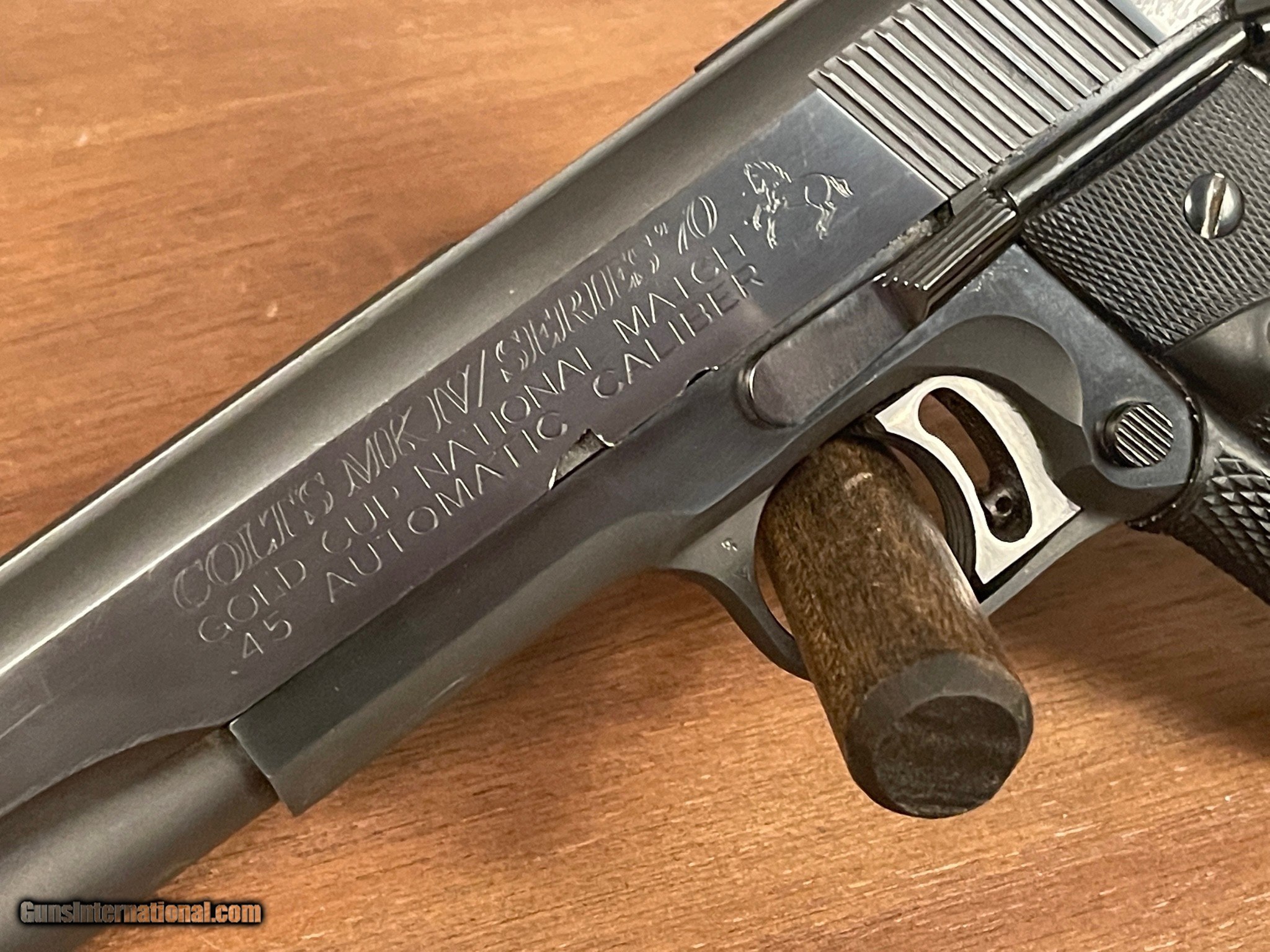 Description: In today on consignment from a private collection. 1972 Colt Gold Cup National Match 45ACP with orginal box and grips. come with 4 boxes of Federal High power 230gr fmj SOLD Handgun Caliber: .45 ACP (.45 Auto) |