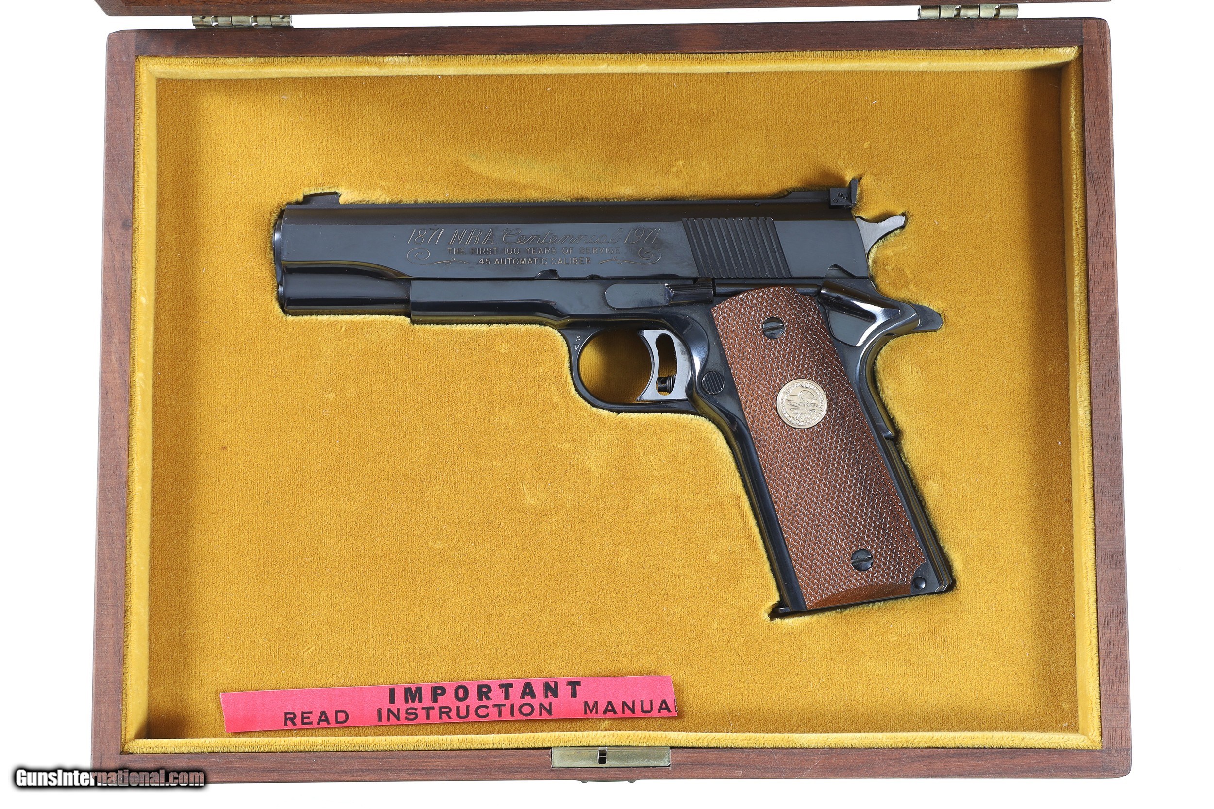 Description: Excellent plus overall condition, appears unfired, with wooden factory display box and paperwork. Free Shipping, No Credit Card Fees! SOLD Handgun Caliber: .45 ACP (.45 Auto) Manufacturer: Colt Model: Gold Cup NM NRA Serial Number: 1710NRA Barrel Length: 5 |