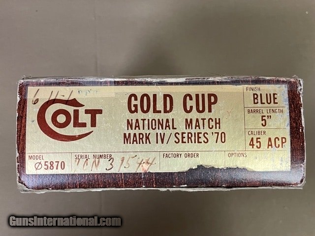 Description: Guns Listing ID: 493319 *NEW IN BOX - CONSIGNMENT* COLT PISTOL - NEW MODEL - GOLD CUP NAT‚‚L MATCH MARK IV SERIES 70 CAL - 45 1 MAG 5\" BBL 8 + 1 S/N 70N395XX MFG 197 SOLD Manufacturer: COLT Model: GOLD CUP NATIONAL MATCH MARK IV SERIES 70 Caliber Info: 45 ACP Condition: Used - Non-Certified Barrels: 5 BARREL Finish: BLACK |