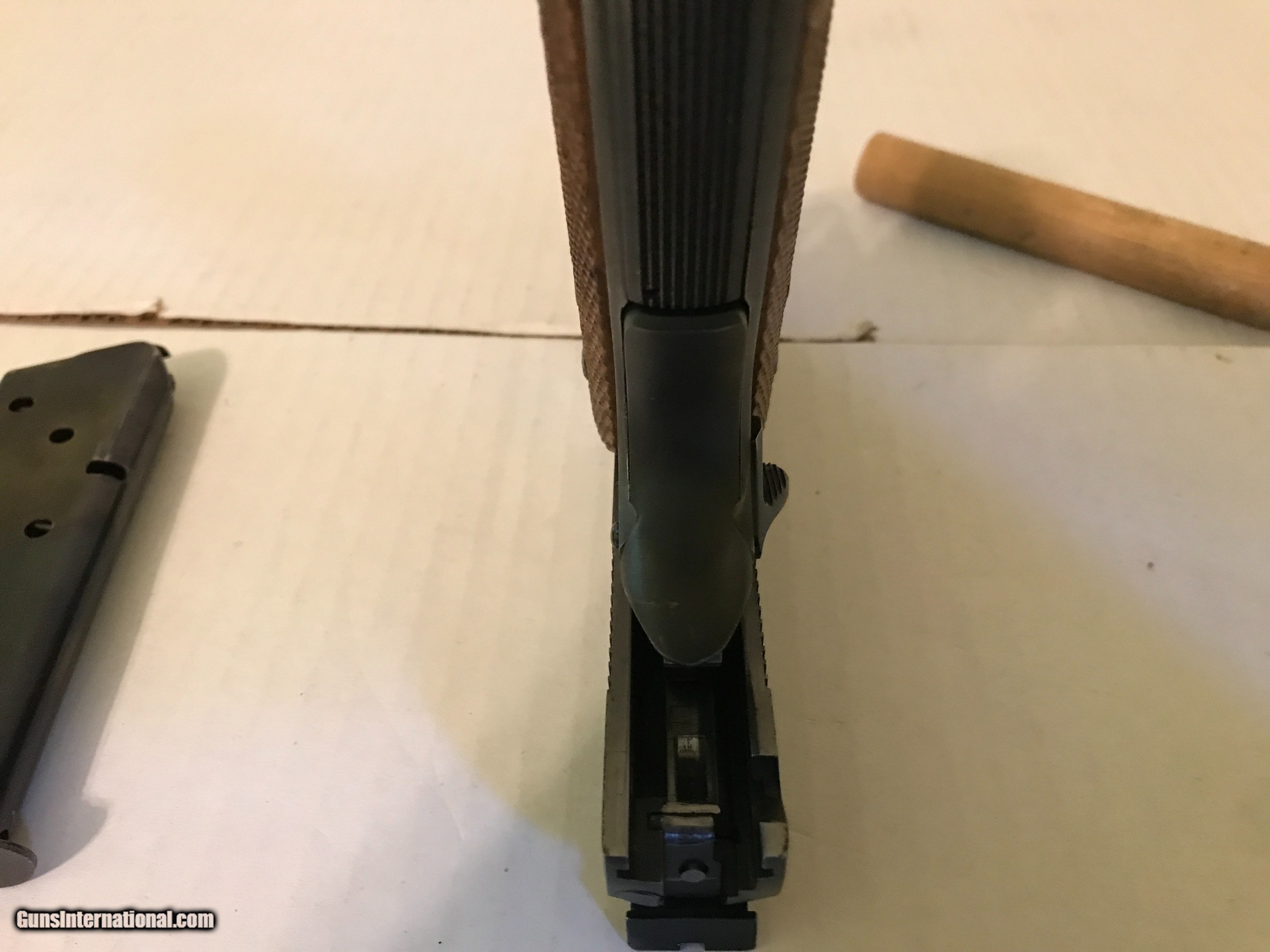 Description: MKIV Series 70 Colt Gold Cup National Match .45 ACP. Very Good condition with some signs of use and holster wear that all should be visible in the photos. Adjustable rear sight, trigger adjustable for travel. Performs very well in every way. Shipping to lower 48 States $70.00 No California sales. SOLD Handgun Caliber: .45 ACP (.45 Auto) Manufacturer: Colt Model: Colt MKIV Series 70 Serial Number: 70N66994 Barrel Length: 5 Condition: Very Good Metal Condition: Some bluing loss Wood Condition: Excellent Bore Condition: Excellent Finish: Blue Steel Weight: 2 Lbs. 8 Ozs. Sights: Adjustable Rear Manufacture Date: 1979 Item Location: Pennsylvania Proof:Nitro: Yes |