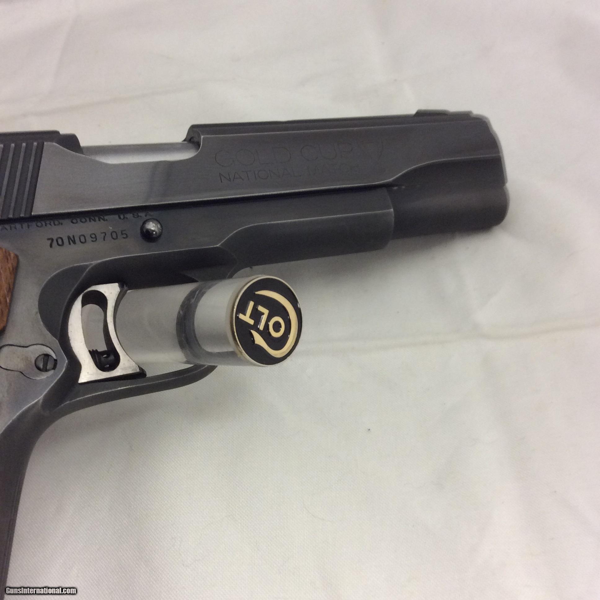 Description: Colt Gold Cup Nation Match Series 70 in excellent condition.This one comes in excellent condition in the original serialised Colt box. Hard to find complete like this in this condition complete with box. She ships free ffl to ffl. Any kind of funds work. SOLD Manufacturer: Colt Model: Gold Cup National Match Series 70 Caliber Info: .45 ACP Condition: EX Metal Condition: EX Wood Condition: EX Bore Condition: EX |
