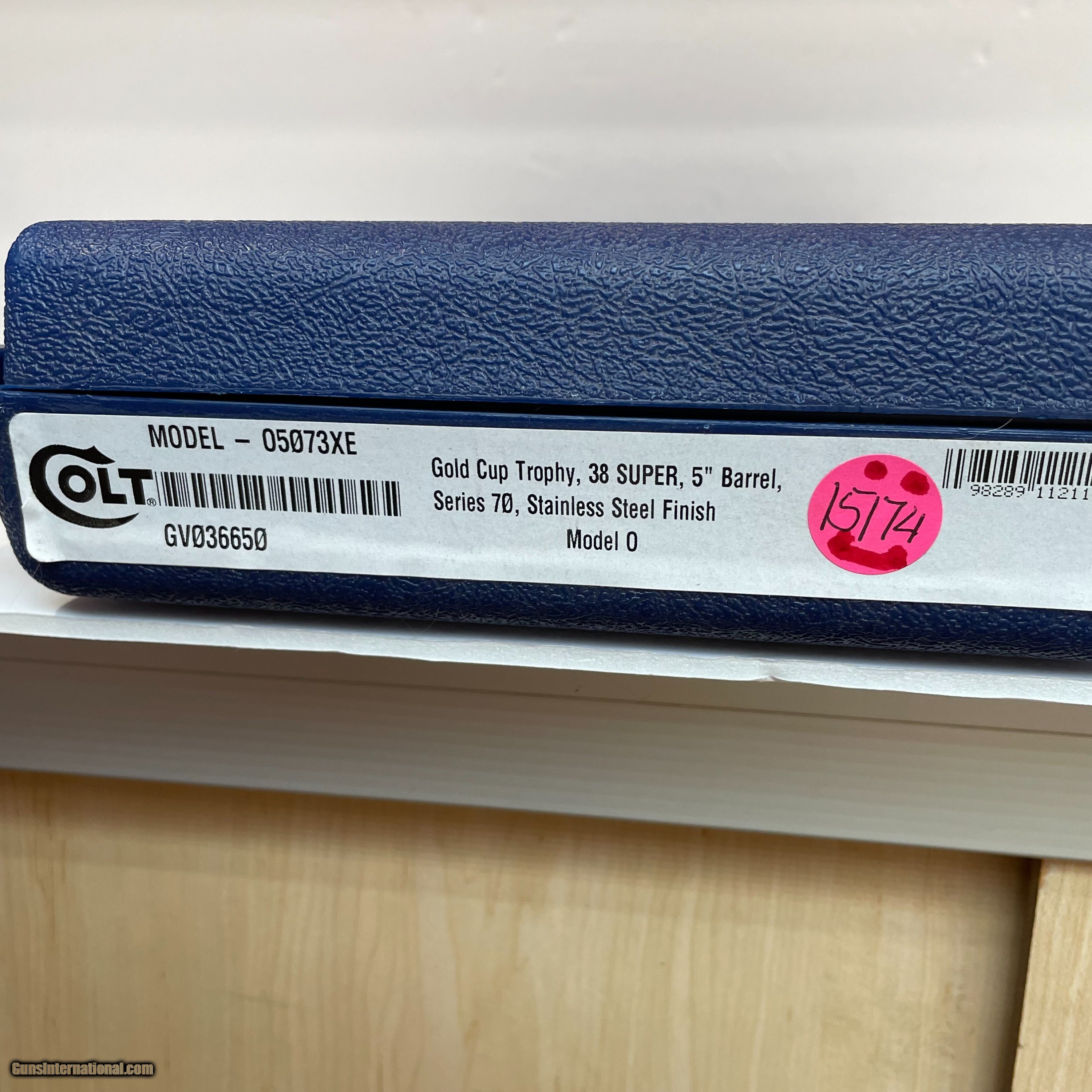 Description: COLT O5073XE GOLD CUP TROPHY SERIES 70 38 SUPER - STAINLESS FINISH CUSTOM HAND ENGRAVED RECEIVER, SLIDE AND GRIPS(THE ROSE) .CUSTOM HAND ENGRAVED CHROME AND GOLD PLATED METAL GRIPS (THE ROSE). WIDE ADJUSTABLE ALUMINUM TRIGGER. ONE 9 ROUND MAG. EXTENDED MAG WELL. NEW IN BLUE COLT HARDCASE. SUBJECT TO PRIOR STORE SALE. SHIP TO FFL ONLY. BUYER RESPONSIBLE TO DETERMINE IF FIREARM IS LEGAL IN HIS/HER STATE. BUYER PAYS 3% FOR CREDIT CARD. BUYER PAYS $40.00 SHIPPING TO LOWER 48 STATES. ARIZONA RESIDENTS PAY 6.712% SALES TAX. SOLD Handgun Caliber: .38 Super Auto Manufacturer: COLT Model: O5073XE Serial Number: GV03XXXX Condition: New in Box |