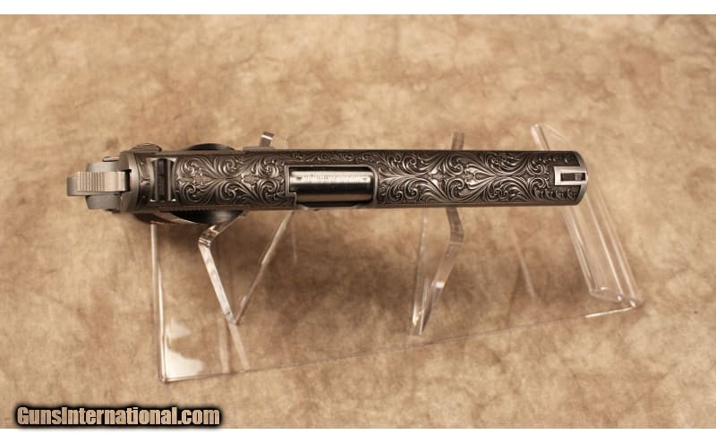 Description: Colt Series 70 gov't model 38 super 5" barrel custom regal engraved by AltaMont Engraving in factory Colt box, limited edition of 200 firearms. .38 Super SOLD Chambers: 38 Super Metal Condition: New Wood Condition: New Bore Condition: New Barrels: 5 Weight: 2.5lbs Sights: fixed Item Location: Mesa, AZ |