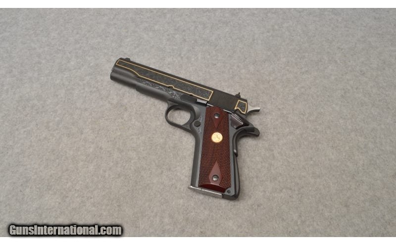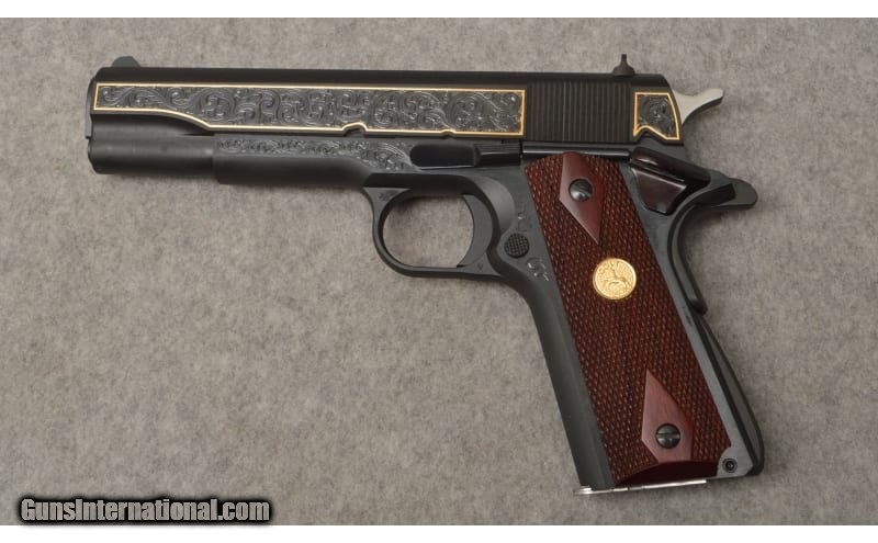 Description: This Series 70 Colt Government Model chambered in .38 Super Auto is a lovely addition to any Colt or 1911 collection. The ornate "B" coverage armory cut engravings and gold bordered slide make this piece both collectible and desirable. The condition of this firearm is new in box, with no marring, damage, or wear. .38 Super SOLD Metal Condition: Excellent Wood Condition: Excellent Bore Condition: Excellent Barrels: 5 Weight: 2 lbs Item Location: West Chester, OH |