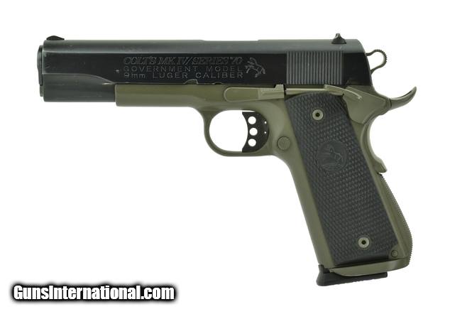 Colt Government Custom 9mm caliber pistol. Customized Series 70 model in 9mm caliber. Has 2-tone finish and parts upgrades. An interesting set up, in very good condition.