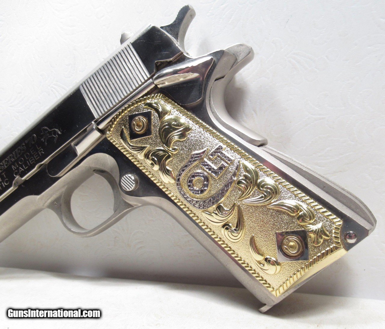 COLT GOVERNMENT MODEL 1911 MK IV/SERIES 70 PISTOL from COLLECTING TEXAS - CIRCA 1973-1974 – 24K GOLD GRIPS