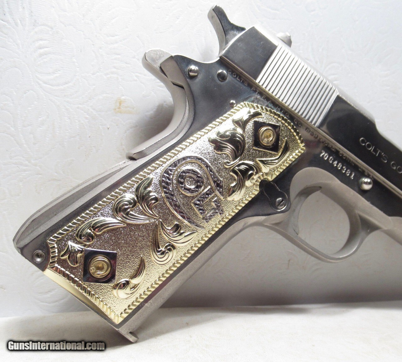 Description: Colt Government Model 1911 MK IV/Series 70 Semi-Auto Pistol; Serial No. 70G48381; .45 ACP; 99% Original Nickel Finish;24 Karat Gold Grips; Made 1973-1974; See All Photos for Condition; No Texts; Call (254)541-5765 or Email Only; PERSONAL PROPERTY of Harold Wieser; NOTICE: We Do Not Do Any Consignments - All Items Listed are Owned by Us - NO SALES to New Jersey or New York City - Antiques Only to Massachusetts and California; NOTE: All Modern Firearms Must Go to FFL Dealer who will Accept From Individual with Texas Driver License; Price: $2,275 + $50 S&H; Payment Address: Harold Wieser - 1466 U.S. Hwy 77 - Rosebud, TX 76570; SEND PAYMENTS VIA USPS PRIORITY MAIL; BEWARE of SCAMS!!! - DO NOT SEND MONEY or CORRESPONDENTS ELECTRONICALLY UNLESS YOU HAVE SPOKEN to HAROLD WIESER FIRST! (254)541-5765 Manufacturer: Colt Model: 1911 MK IV - 70 Series Serial Number: 70G48381 Price: $2,275.00 Contact Seller |