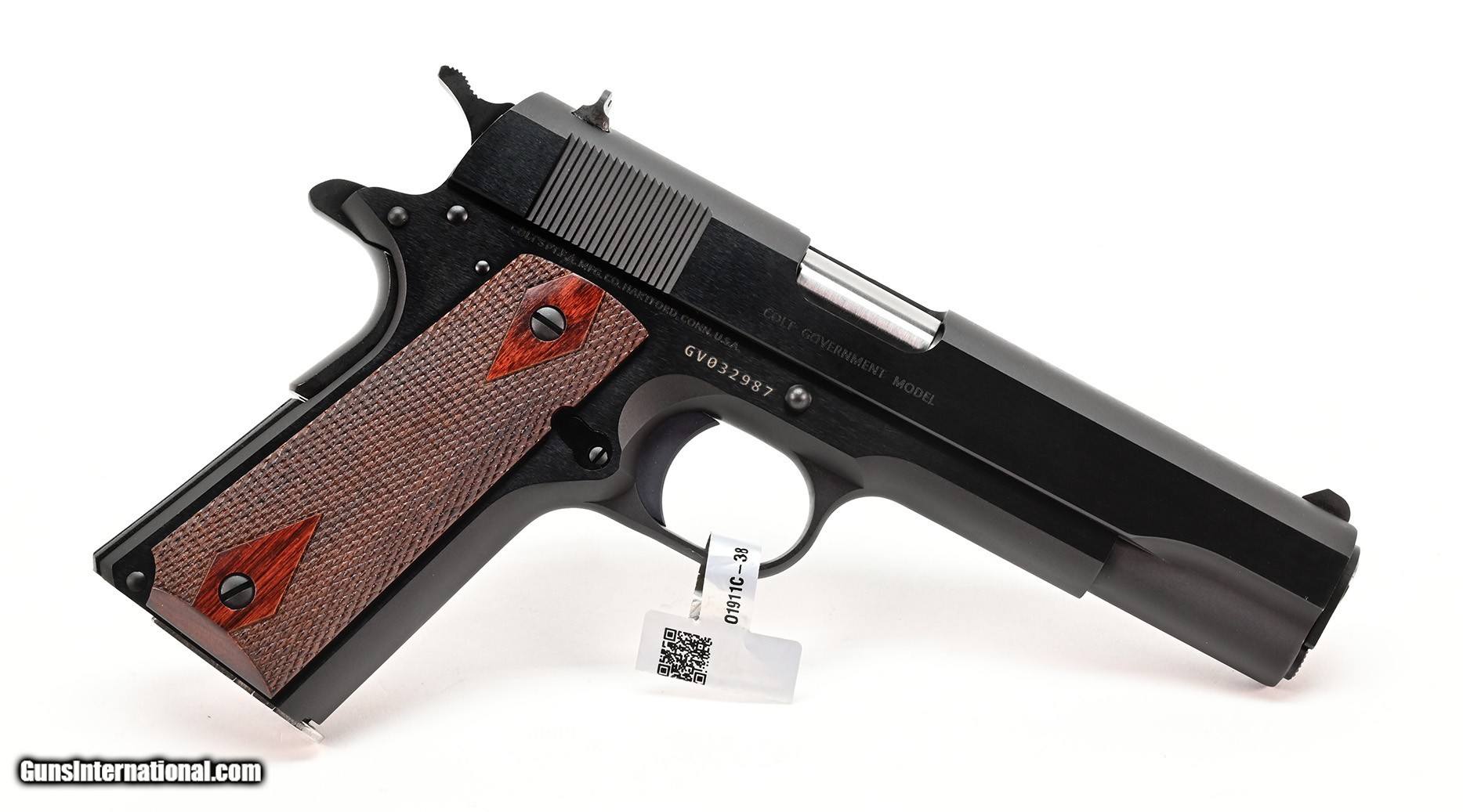 Description: Colt Government Model National Match 38 Super Series 70. O1911C-38. Brand New In Case AVAILABLE FOR PURCHASE AT OUR ON-LINE STORE Colt Government Model National Match 38 Super Series 70. O1911C-38. Brand New In Case. When you think of a 1911, you think of Colt. A tribute to the revered Commercial Government Model pistols of the past, the 1911 Classic features the Series 70 firing system and rollmarks, national match barrel, staked on front sights, and spurred hammer. Chambered in .38 Super and blued, this firearm is a pure and simple 1911, designed for you to make it your own. Model O1911C-38 In Blue Hard Case This Ad May Use Stock Images. The Serial Number For This Firearm Is: GV033041 Specifications
