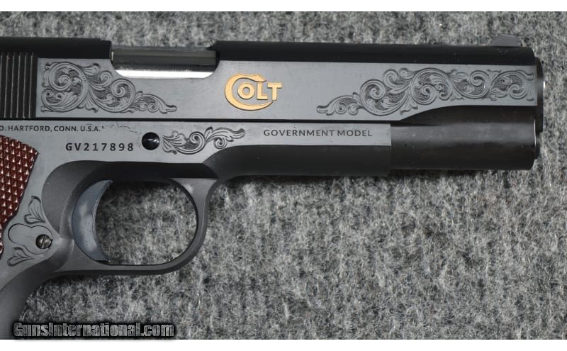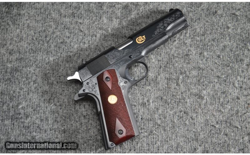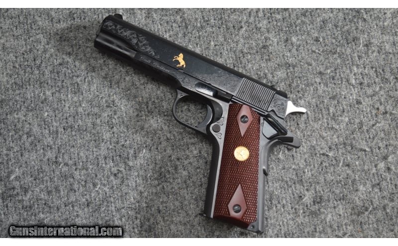 Description: Gun comes factory new from Colt custom shop. Features a stunning engraved slide with gold accents, checkered wood grips and a crisp match grade trigger. .45 ACP SOLD Metal Condition: ANIB Wood Condition: ANIB Bore Condition: ANIB Barrels: 5 Triggers: SAO Weight: 2.4 lbs. Sights: Iron sights Item Location: Gainesville, VA |