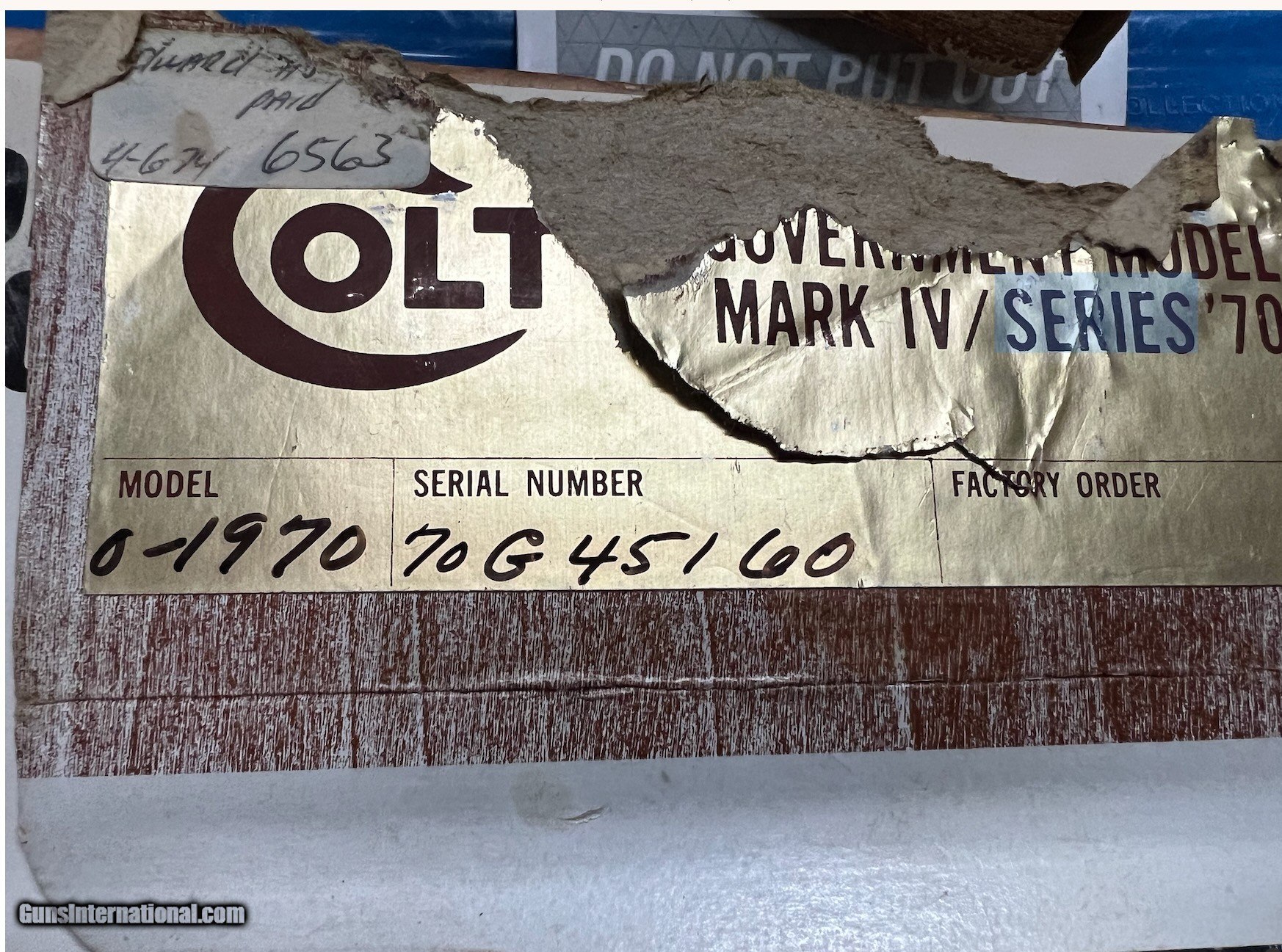 Description: Offered for your consideration is a Mint, NEW/UNFIRED 70’s series COLT MK IV Government .45 AUTO. This classic 1911 Colt design offered for sale was made by Colt – in 1973, a prime example of a .45 Auto Colt pistol in splendid condition that will continue to be almost impossible to find – those 70’s series Colts becoming harder and harder to locate. Pistol remains in all authentic UNFIRED condition – 100% BRAND NEW in Original Box – a true collector’s dream and a unique Pride of Ownership. Finish is Superb , High-Polish blue – simply Pristine, Slide has never been racked. Grips are all authentic as manufactured in 1972 with Colt Medallions (Double Diamond Rosewood) This is how it left factory in 73 – Pistol comes complete with original factory box numbered to this very pistol along with original paper work that came with it from factory Shipping with insurance………………………. $50 – Will only ship to FFL holder – scan copy of license via e-mail or hard copy with payment. Personal Check, Money orders or cashiers checks accepted Buyers ARE RESPONSIBLE FOR KNOWING THE LAWS IN THEIR STATE REGARDING THE OWNERSHIP OF ANY FIREARM. DO NOTIF IT IS NOT LEGAL IN YOUR STATE. CHECK WITH YOUR LOCAL FFL FIRST SOLD Handgun Caliber: .45 ACP (.45 Auto) Manufacturer: Colt Model: 1911 Bore: Perfect Condition: Mint Metal Condition: Perfect Wood Condition: Perfect |
