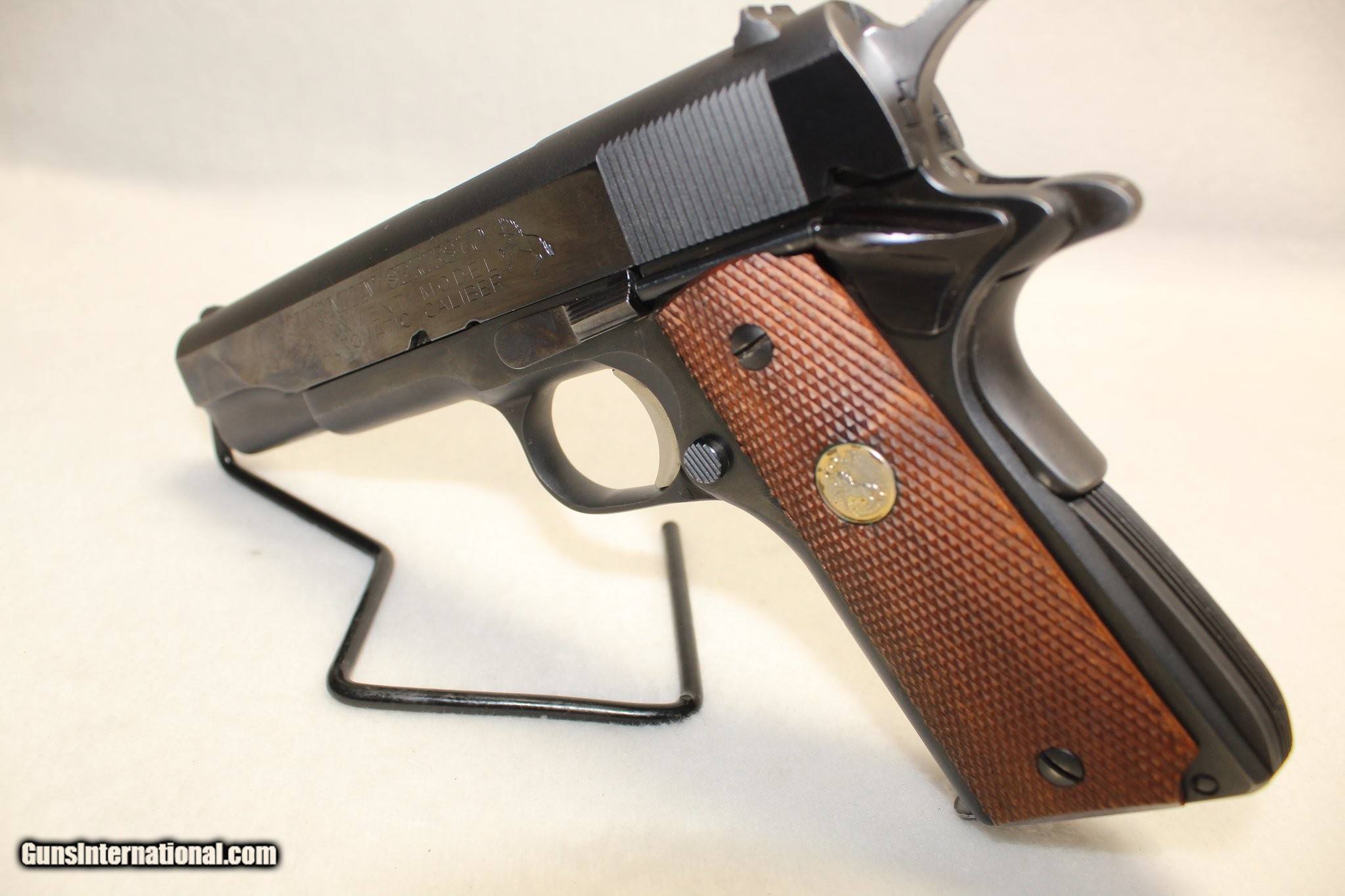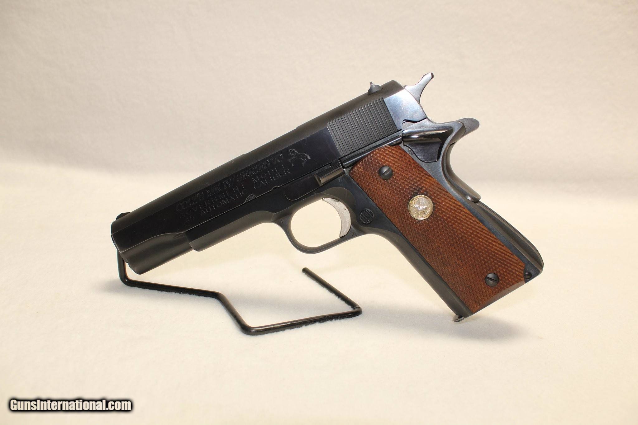 Description: Guns Listing ID: 584573 Description: Beautiful example of the classic American iconic fighting handgun. This Colt MK IV sports a clean 5 inch barrel with traditional wood grips. It has the standard Army sights, and arched mainspring housing. Action and lock up are tight, and this one is ready to go. Manufacturer/Importer: Colt Model: MK IV Series 70 Type: Pistol Caliber: 45 Auto Action: Hammer Capacity: 7rnd Barrel Length: 5in Frame Material: Metal Sights: Iron Sights SOLD Manufacturer: COLT Model: MK IV SERIES 70 Caliber Info: .45 ACP Condition: Used - Non-Certified Barrels: 5" BARREL Action: SEMI AUTOMATIC Finish: wood, blued steel |