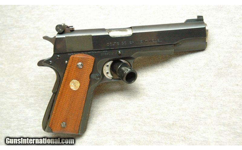 Description: Excellent, light wear, small nicks and scratches. Colt 5" barrel, match bushing, sharply checkered front strap and adjustable target sights. A good choice for centerfire handgun shooting cpmetitions. .45 Auto SOLD Chambers: Semi auto Metal Condition: Excellent Wood Condition: Grips are excellent Bore Condition: Bright Barrels: 5 Triggers: Single action Butt Pad: Wood grips Sights: Adjustable Item Location: La Vista, NE |