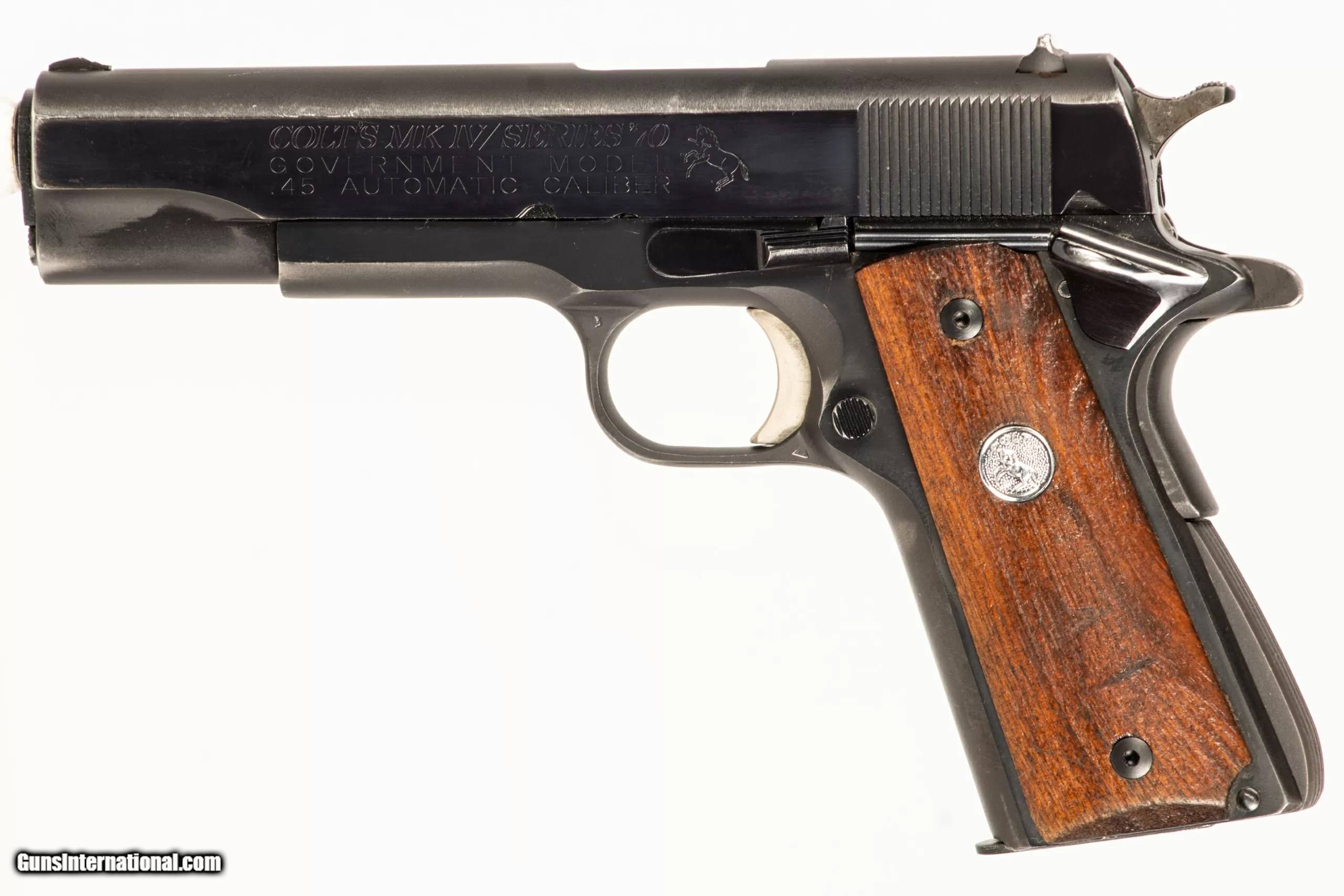 Description: Colt model Mk IV Series 70, chambered in 45acp. This pistol sports a 5 inch barrel and features a bright bore and sharp rifling. The NRA grading condition for this USED firearm is Very Good. Dury's Lifetime Warranty: All firearms purchased from Dury’s Gun Shop, NEW or USED, are covered by a lifetime warranty. We will repair or replace, at our discretion, any firearm purchased from Dury’s Gun Shop, Inc. for as long as it is owned by the purchaser. This warranty is not transferable. WE BUY GUNS! NO COLLECTION TOO BIG OR SMALL FOR OUR GUNS INTERNATIONAL CUSTOMERS ALL OF OUR FIREARMS CAN BE PURCHASED DIRECTLY FROM OUR DURY'S GUNS SITE ! SOLD Manufacturer: Colt Model: MKIV Series 70 Caliber Info: 45 ACP Barrels: 5inches |