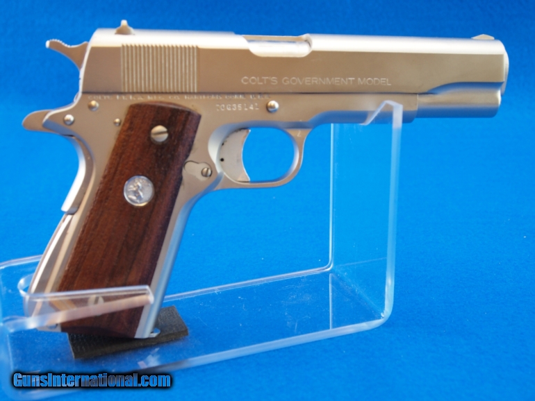 Description: Colt MK IV/Series 70 Government 1911 .45 ACP, 5 inch barrel, shiny bore, satin finish, thumb safety, beavertail grip safety, textured Colt medallion wood grips. Add 3% for credit cards $25.00 S&H SOLD |