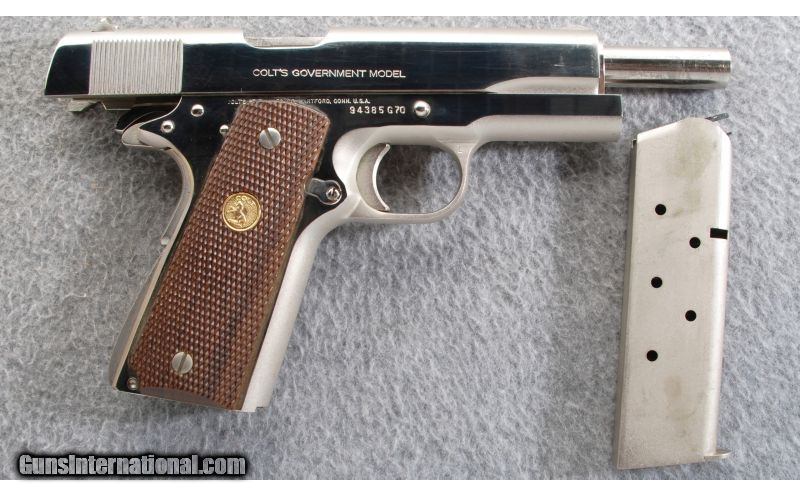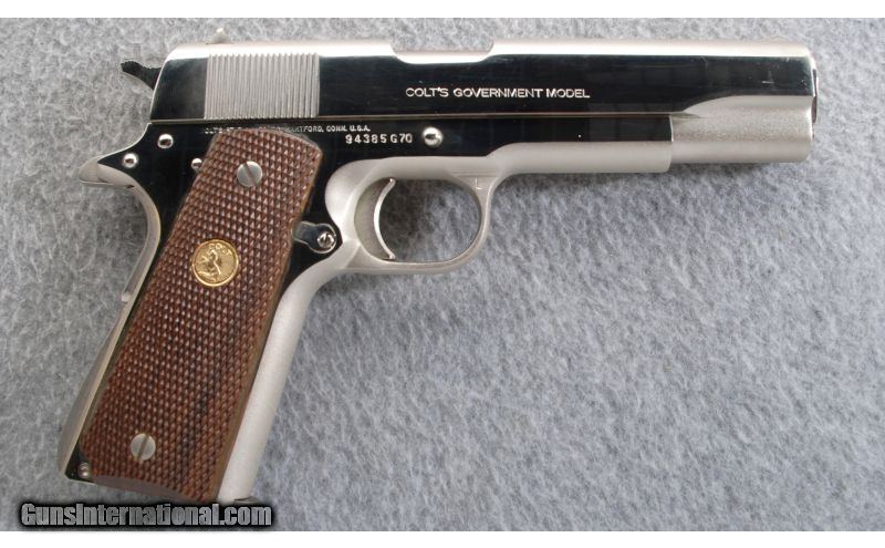 Description: Here is a mint condition Colt MK IV Series 70 Government model with box. The outer box is not in the best condition as seen in the pictures but is all original with matching serial numbers. Inside the box is all the manuals that came with it including an extra magazine. The pistol is between 95-98% with the only hickup being a little scratch on the nickel on the right side of the frame near the front sight. The grips and medallions are all in perfect condition. SOLD Caliber Info: .45 ACP. Chambers: Semi-auto. Metal Condition: Excellent. Wood Condition: Excellent condition with excellent condition medallions. Bore Condition: Very good condition with sharp rifling. Barrels: 5 inch. Triggers: Single. Weight: 2 lbs. 8 oz. Sights: Standard iron sights. Extras: Comes with original Colt box with manuals and an extra mag. Item Location: Gonzales, LA |