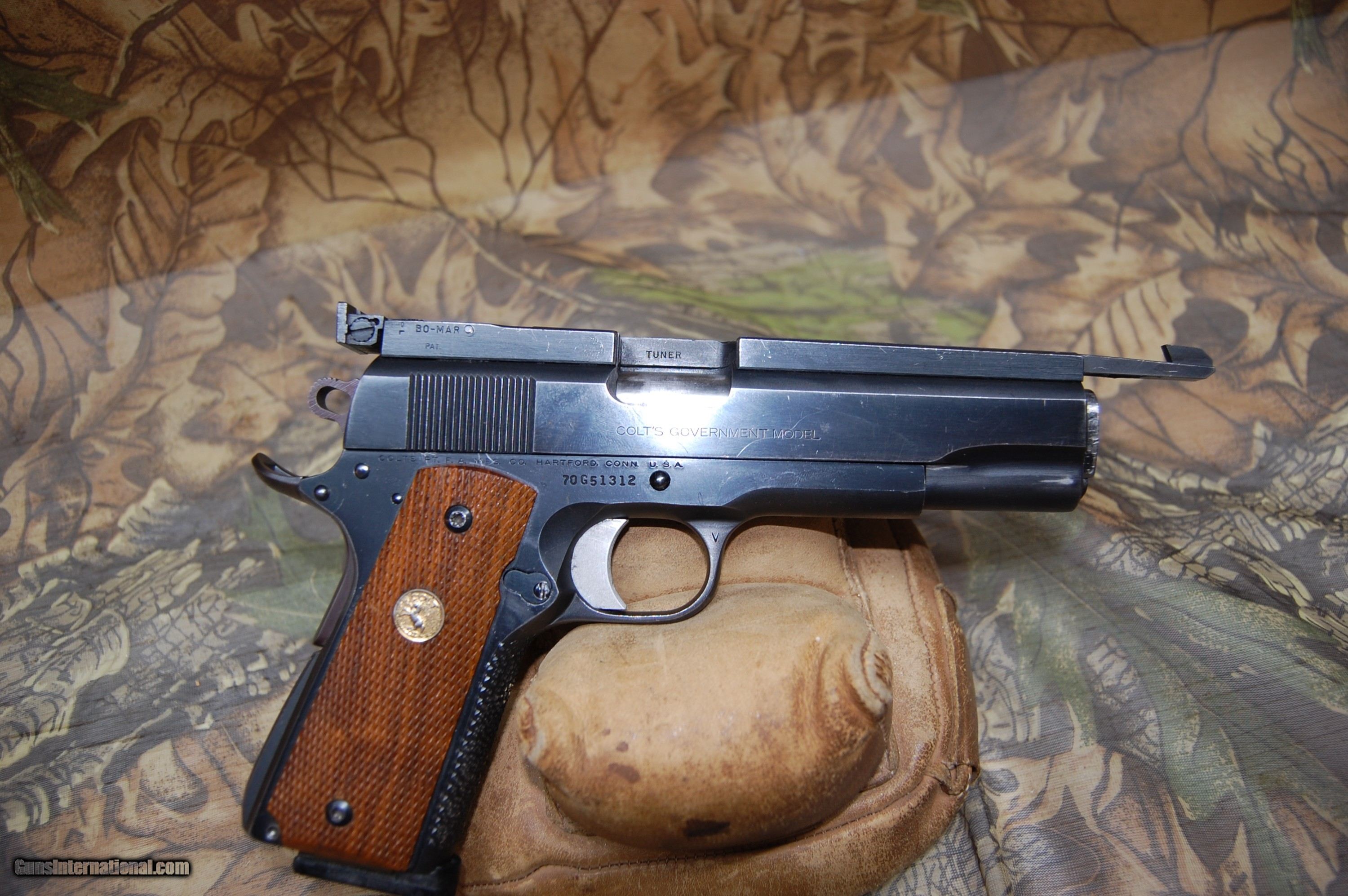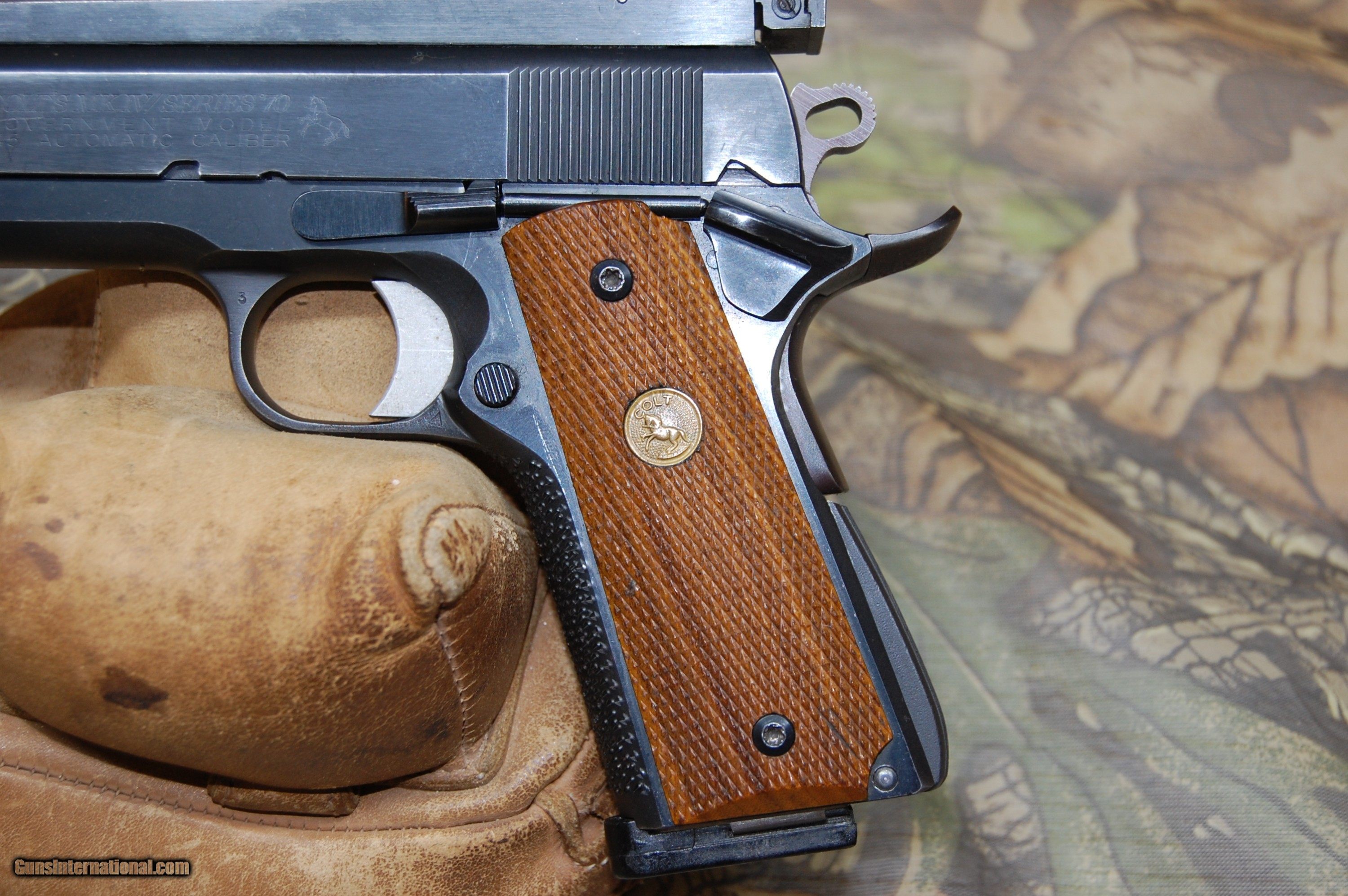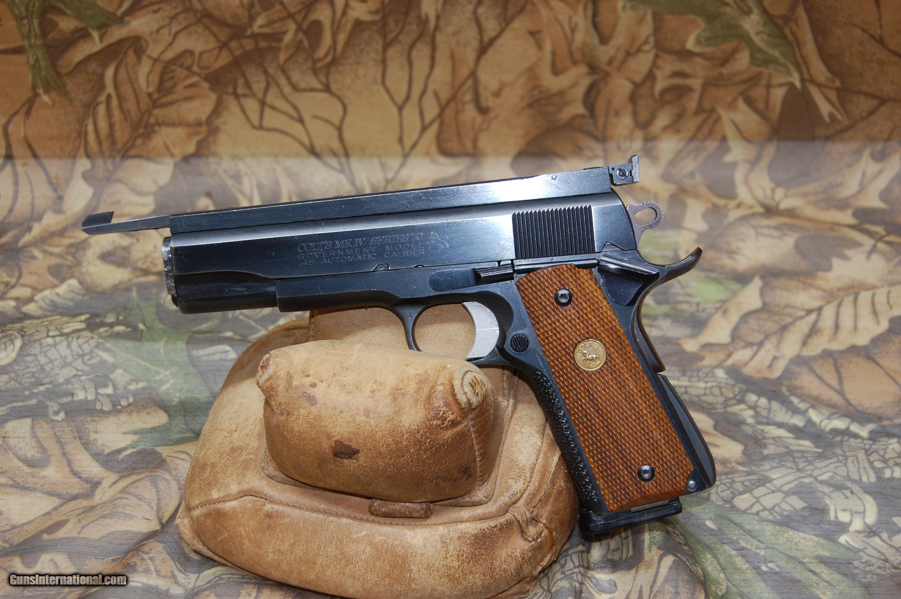 Description: Colt MK IV Series 70 in 45 ACP used. This Colt has Bo-Mar sights installed with adjustable rear. I got this in a collection. I have test fired it and it functions well. Nice grips. Any questions feel free to give me a call. I am in South Carolina 803-924-4502. $795.00 plus shipping SOLD Manufacturer: Colt Model: MK IV Series 70 Serial Number: 70G51312 Barrel Length: 5 Chambers: 45 ACP Condition: Good Action: Semi-Auto |