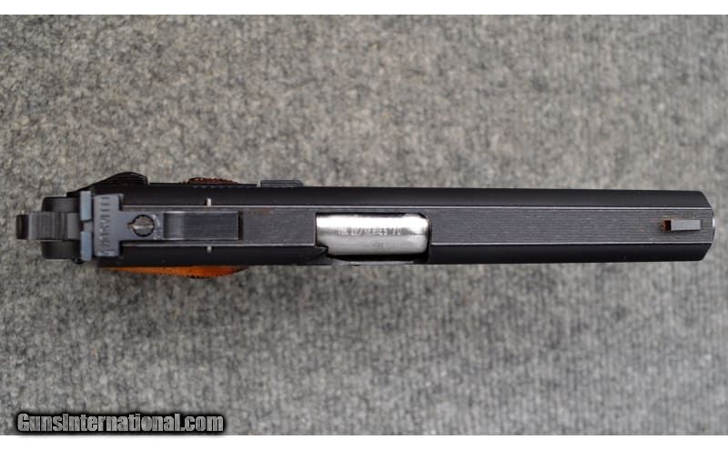 Description: For your consideration, a Mk ? / Series 70 Gold Cup National Match chambered in .45 Auto. Colt's flagship target 1911, the Gold Cup National Match features an adjustable, wide trigger, national match barrel, wide ribbed slide, and adjustable sights. The barrel bushing is of the fingered, collet type. This example dates to 1975. .45 Auto SOLD Metal Condition: Excellent Wood Condition: Excellent Bore Condition: Excellent Barrels: 5 Triggers: Serrated Face Weight: 2.5 lbs Sights: Iron Sights Item Location: Hamburg, PA |