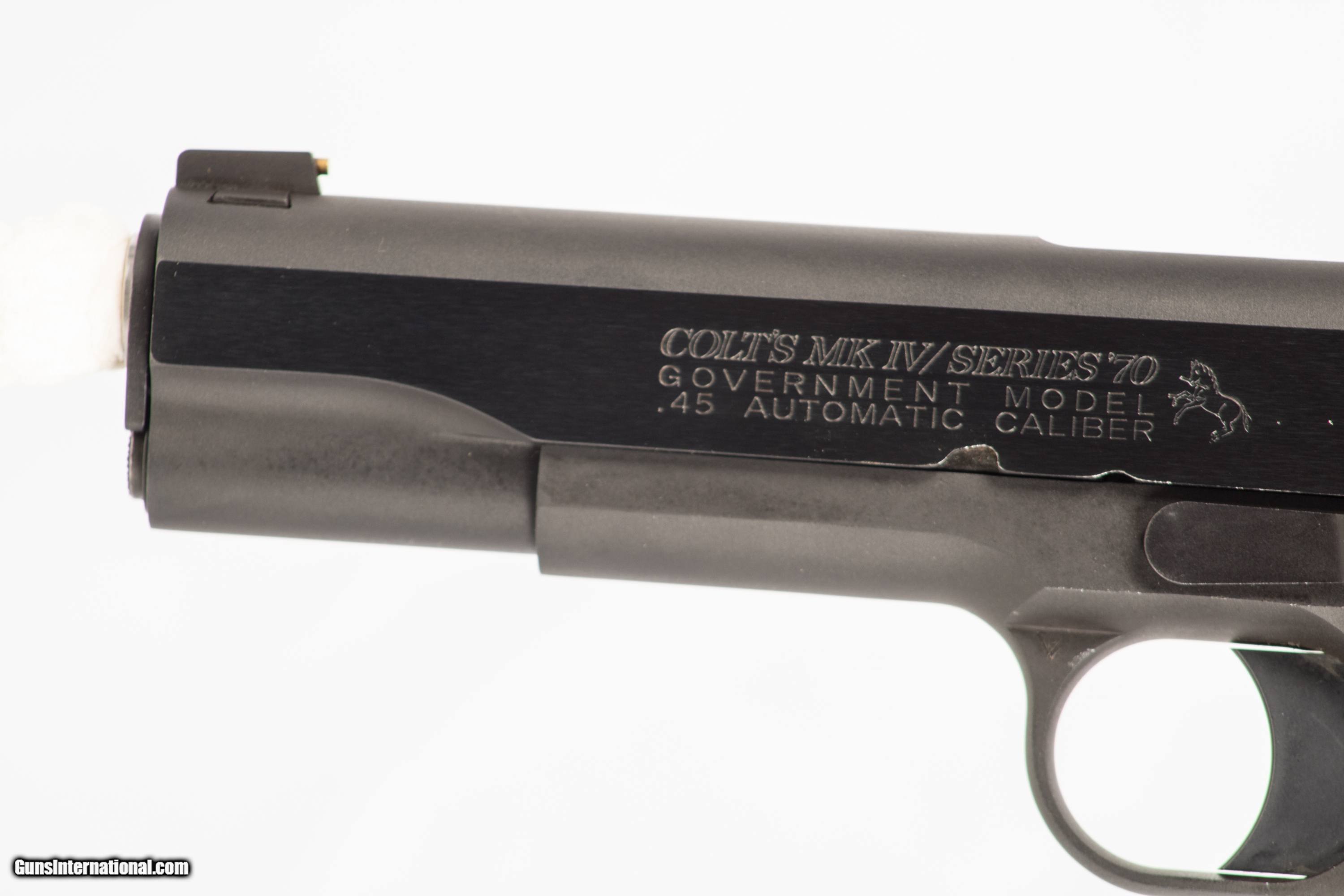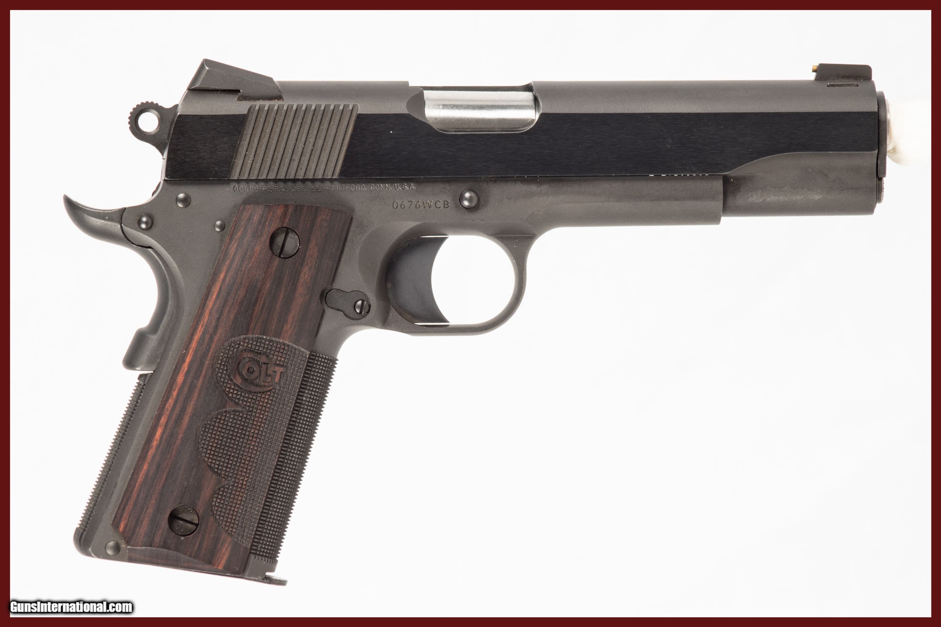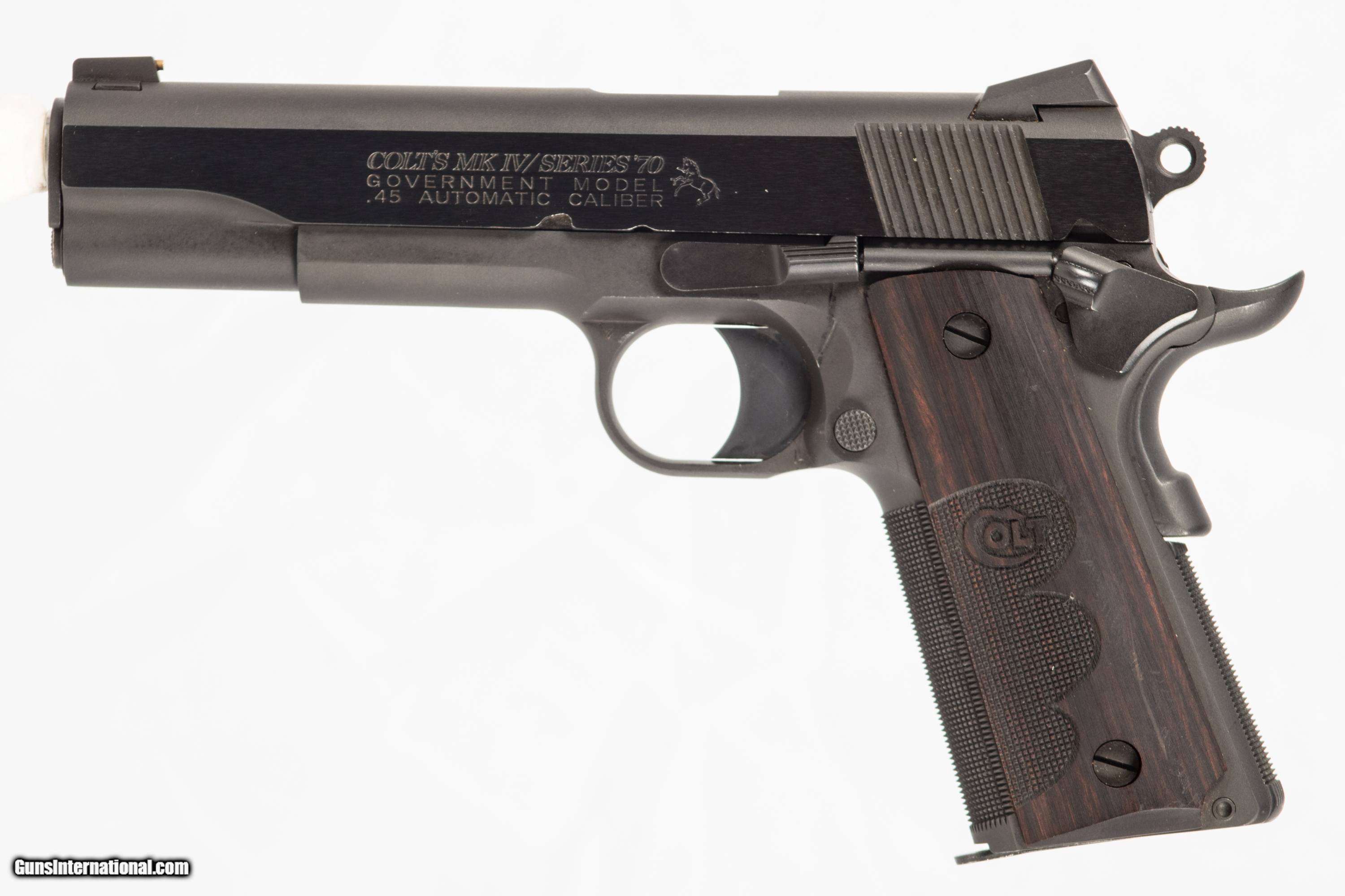 Colt MK IV Series 70 chambered in 45 ACP with a 5 inch barrel bright & shiny bore original box and extra magazine. This gun is in excellent condition and is covered by Dury's Lifetime Warranty.