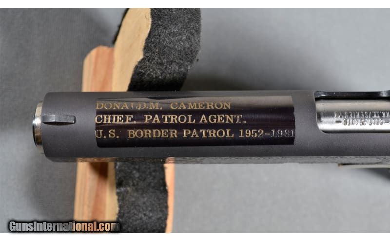 Description: This Border Patrol exclusive Colt Mark IV series 70 in 45 ACP. At one point in time this firearm belonged to Mr. Donald Cameron a Chief Border Patrol Agent from the early 50s to the early 80s. The inlay is mostly gone from use, but the metals are in good shape. .45 ACP SOLD Barrels: 5 Inches Item Location: Lacey, WA |