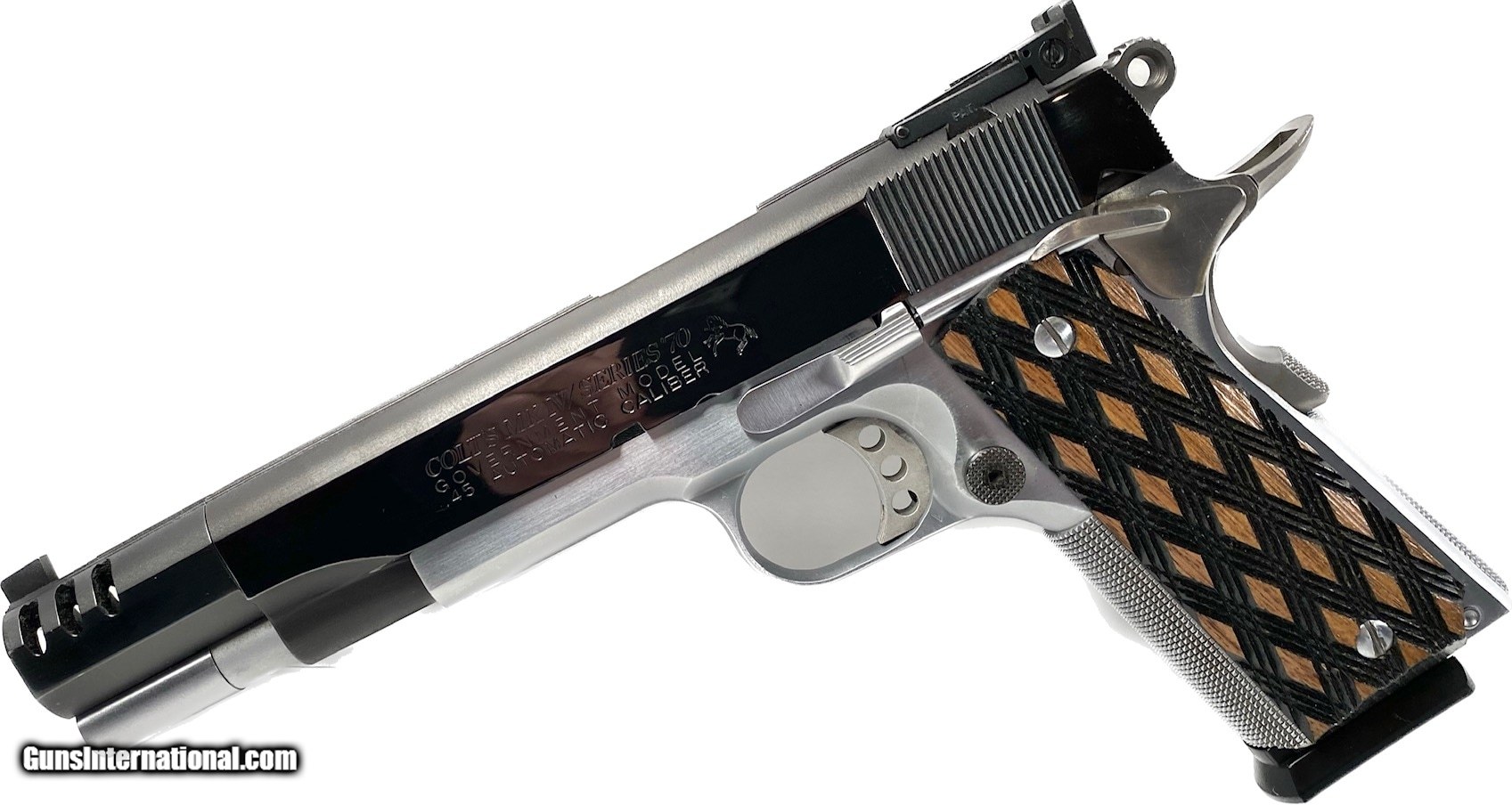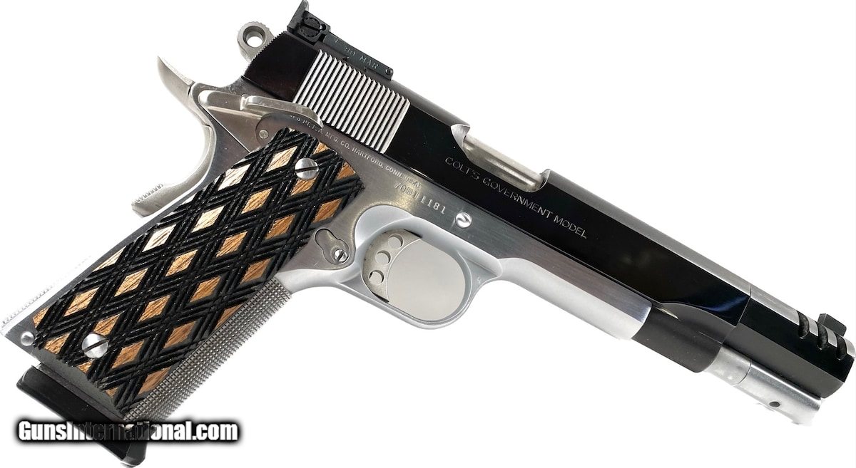 Description: Guns Listing ID: 790700 COLT MKIV SERIES 70 .45 acp, 5\" bbl, cust. grips, 1 mag \"KART custom bbl\" Stock # 03100023 Serial # 70B11181 Built by Ed Masaki, member of the U.S. Pistol Team (first person on the team from Hawaii) SOLD Manufacturer: COLT Model: MKIV Series 70 Caliber Info: .45 ACP Condition: Used - Non-Certified Barrels: 6 BARREL Finish: BLUE AND SILVER |