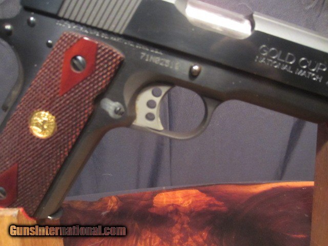 Description: COLT GOLD CUP NATIONAL MATCH SERIAL NUMBER 7102518 SERIES 70 AS NEW IN FACTORY BOX WITH TWO CLIPS ALL PAPERS. NEED MORE INFORMATION PLEASE CALL OUR OFFICE 716-941-3946 SOLD |