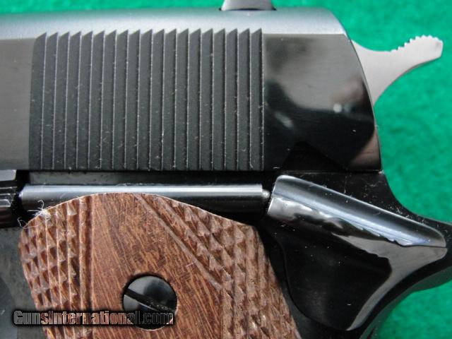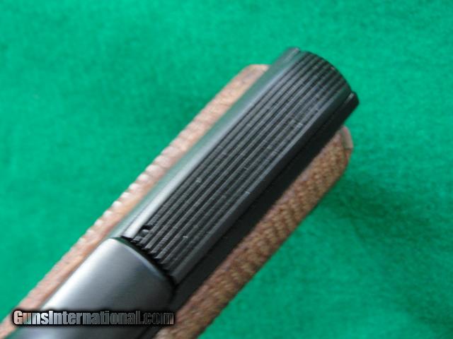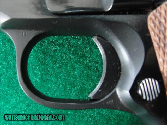 Description: Serial #1861xx mfg ca 1966 Pre Series 70 in pristine condition. Have a look at the pictures. Probably hasn't had half a box of ammo thru it in its life. Fresh release from a private collection; just professionally cleaned and lubed, to get off all the nasty and hardened preservative grease. Had some ugly skipline disco-era grips that were destroyed from the grease, so we put on this set, from stock. These early guns are simply beautiful: dead flat gloss sides, crisp edges and fine markings. This one is issue-free, and just as clean and pretty inside as out. No box or papers located at this time. CA sale OK as face-to-face private party transfer ONLY, in the SF East Bay Area. SOLD |