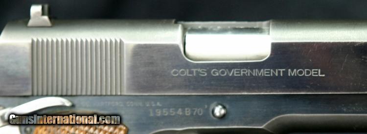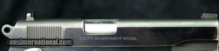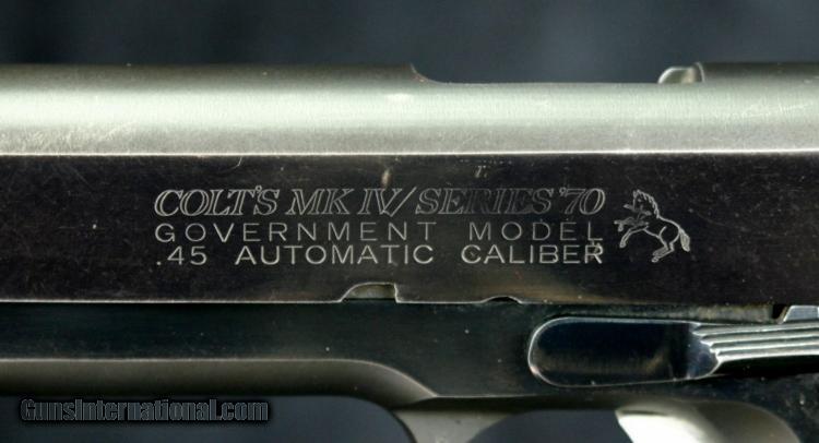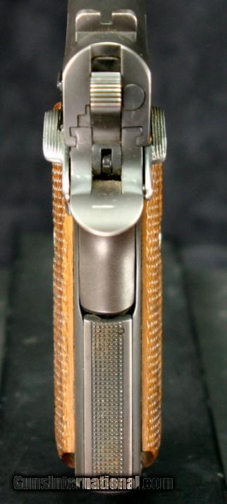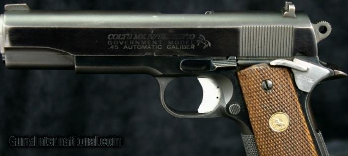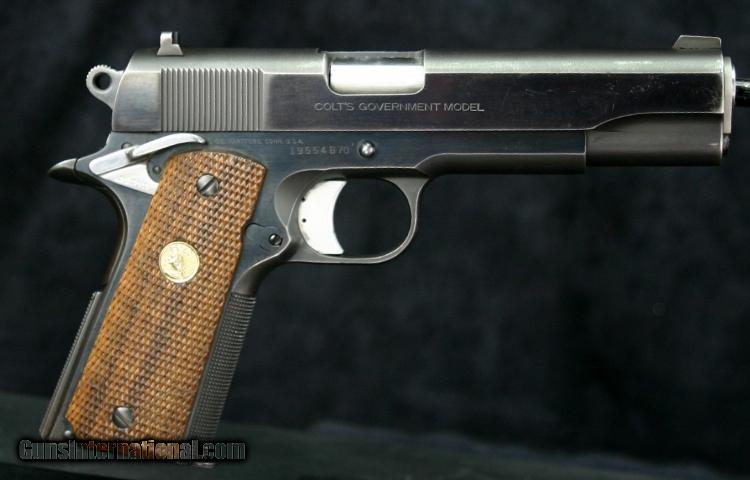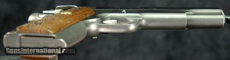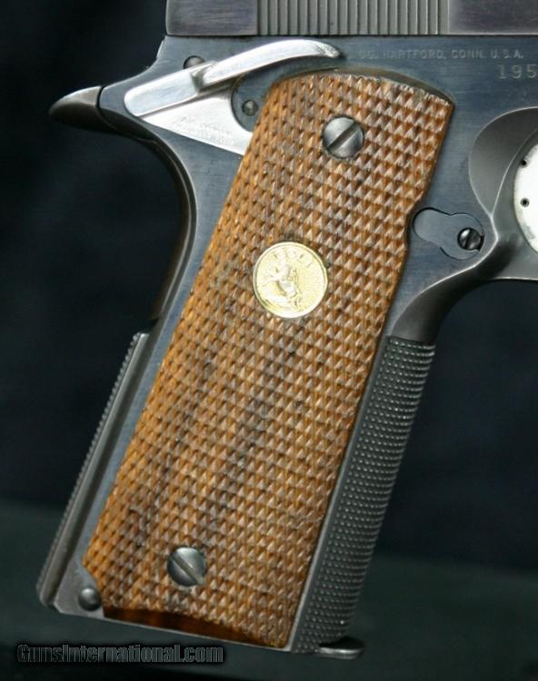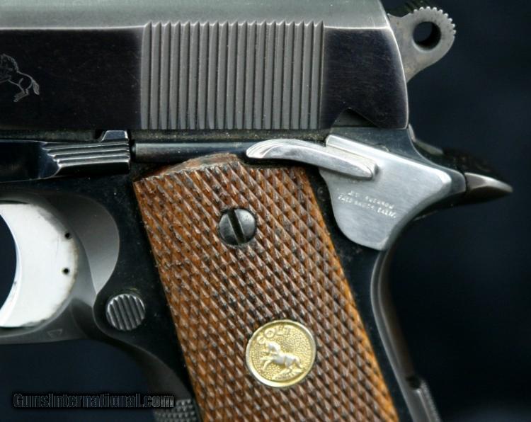 Description: #19554B70, .45acp, 5 inch BAR STO barrel, blued finish, 2 piece Colt grips, Swenson ambidextrous safety, custom hammer trigger and grip safety, checkered front and back grip straps. ?Condition: mirror bore, 95% blue overall, excellent grips, excellent marks, excellent mechanically. SOLD |