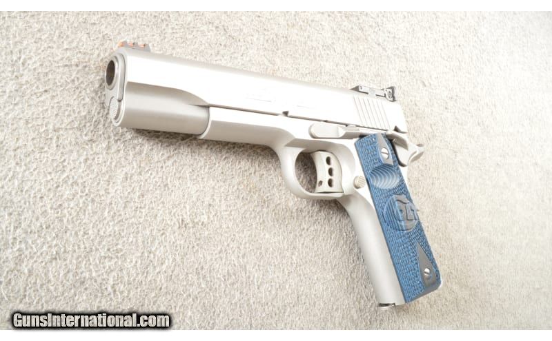 Description: This Colt Government 1911 Gold Cup Lite is chambered in .45 Auto with a 5-inch National Match Barrel and a brushed stainless steel finish. This 1911 Classic features the Series 70 firing system with a wide 3 hole trigger and extended slide stop. The sights are a dovetailed fiber optic front with an adjustable serrated squire notch rear. The grips are a checkered blue G10 with the Colt logo. This Colt is a factory demo gun and does come with the matched hard case, owners manual, and cable lock. .45 Auto SOLD Chambers: 8+1 semi auto. Metal Condition: As new. Wood Condition: As new. Bore Condition: As new. Triggers: Single action trigger. Sights: Fiber optic front with adjustable rear. Item Location: Bolingbrook, IL |